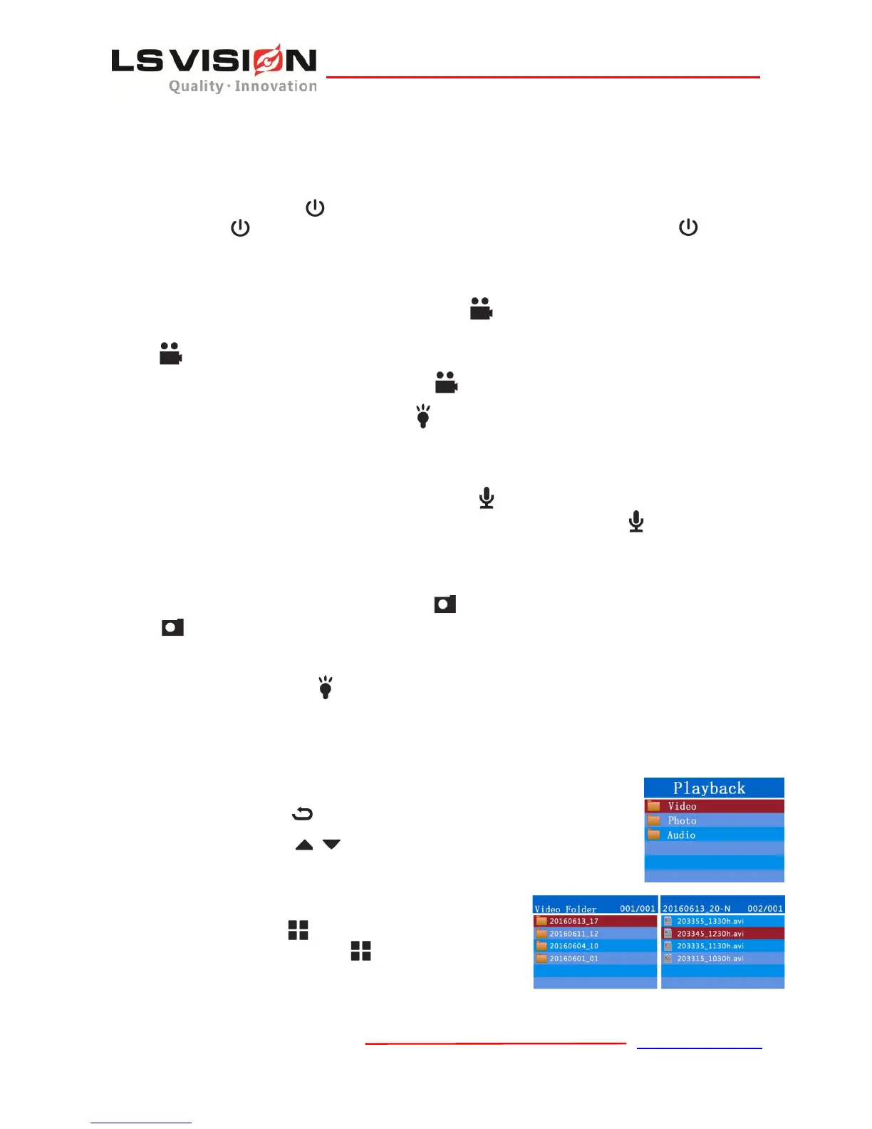 once and the device indicator will turn red. When the device is recording, short press the Record