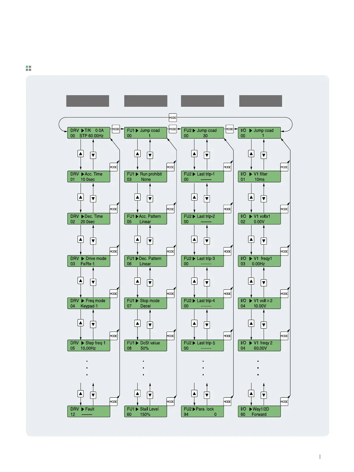 Parameter group moves directly to DRV group by pressing [SHIFT] key in any parameter code.