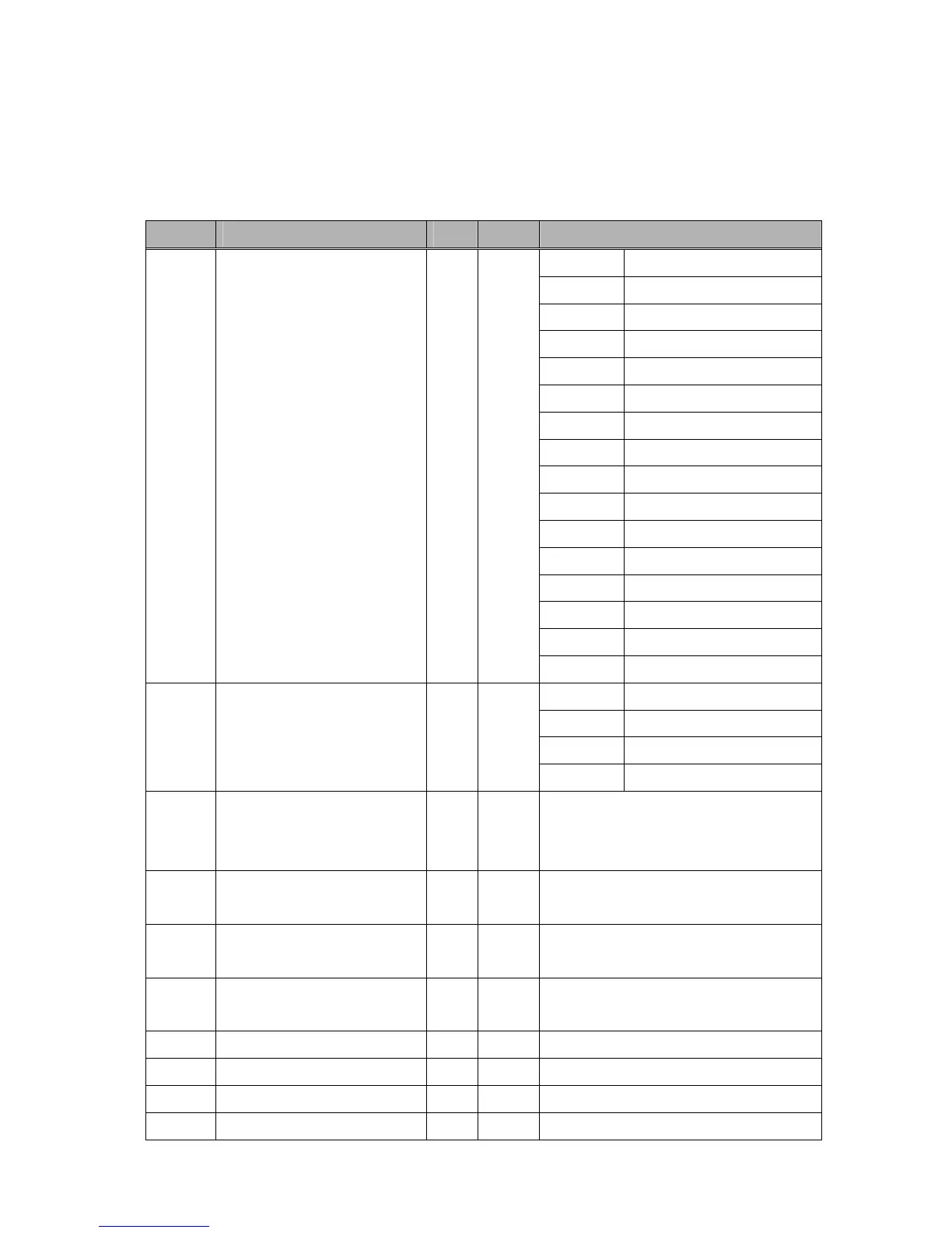 Address Parameter Unit R/W Data Value