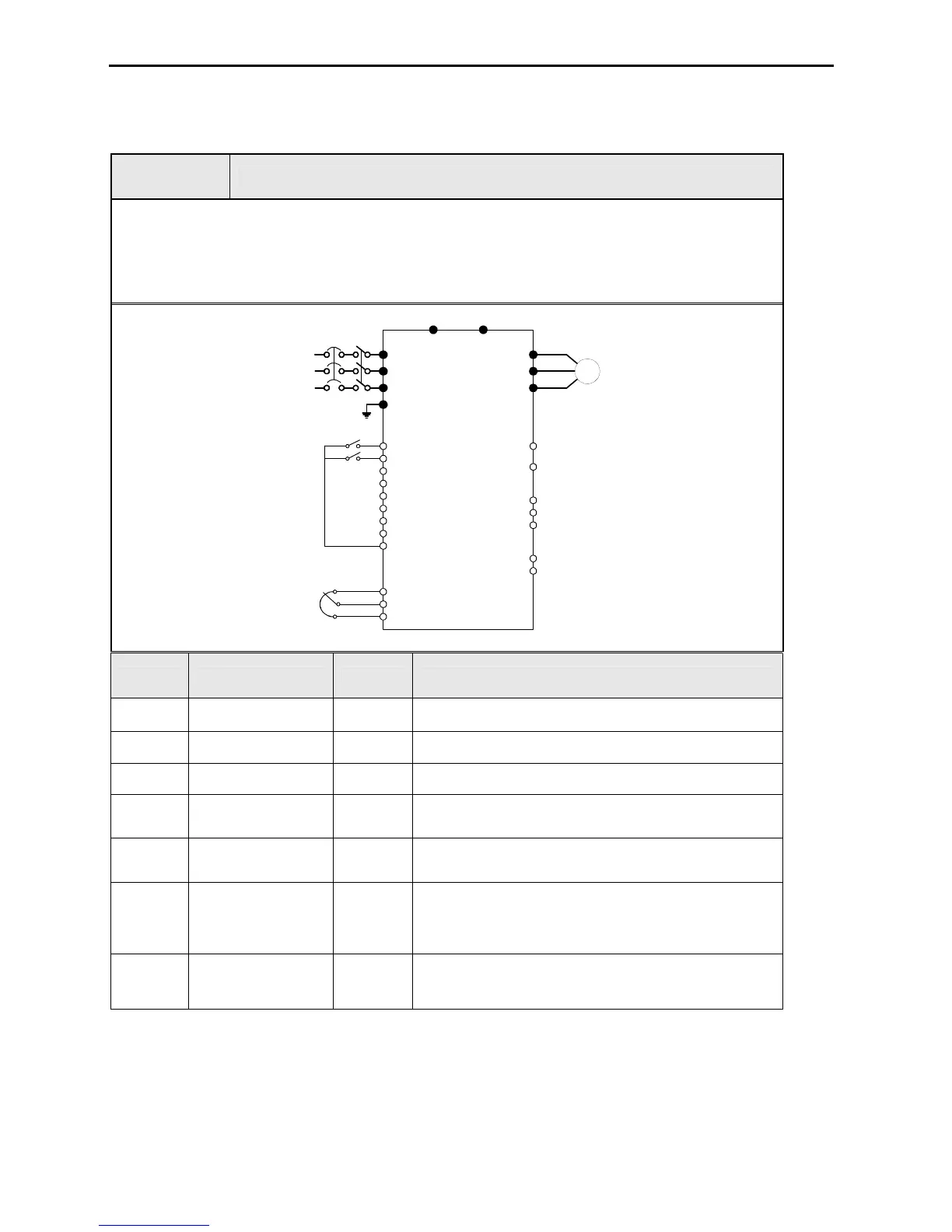 -. Frequency command: 50[Hz] analog input via V1 terminal