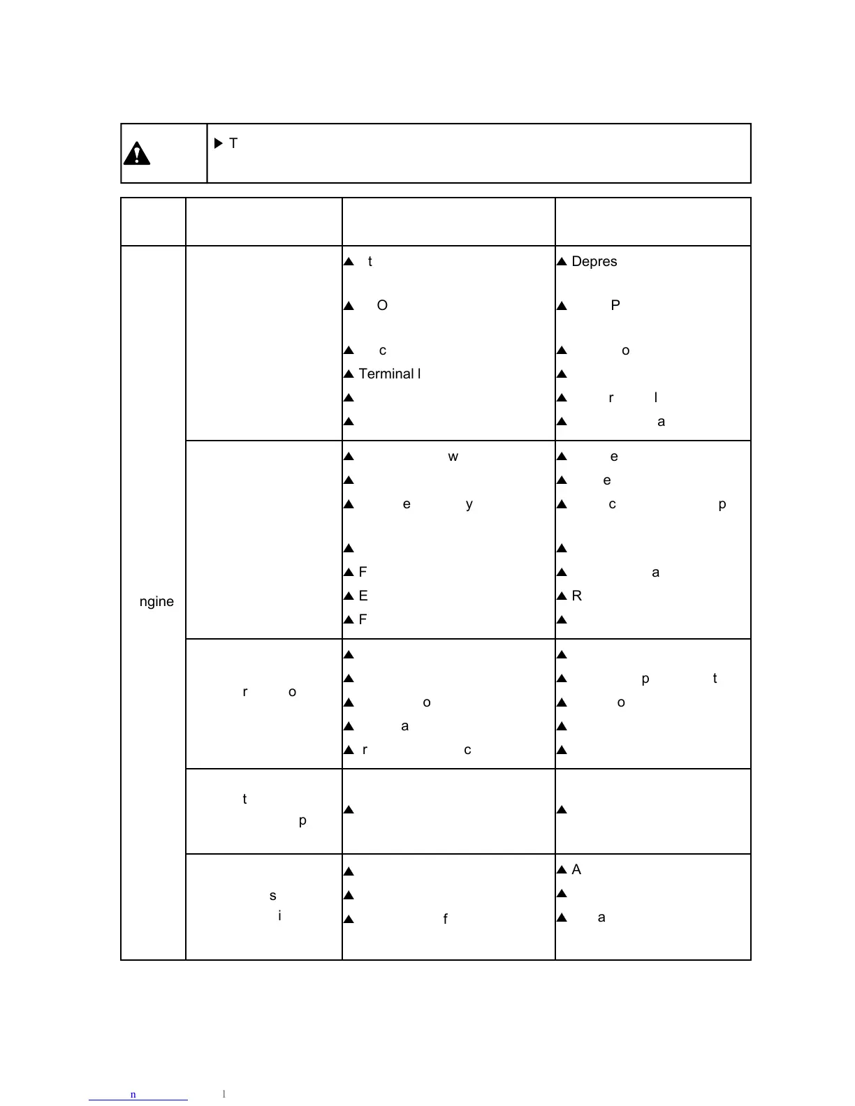 To avoid injury due to sudden start, apply parking brake and place the