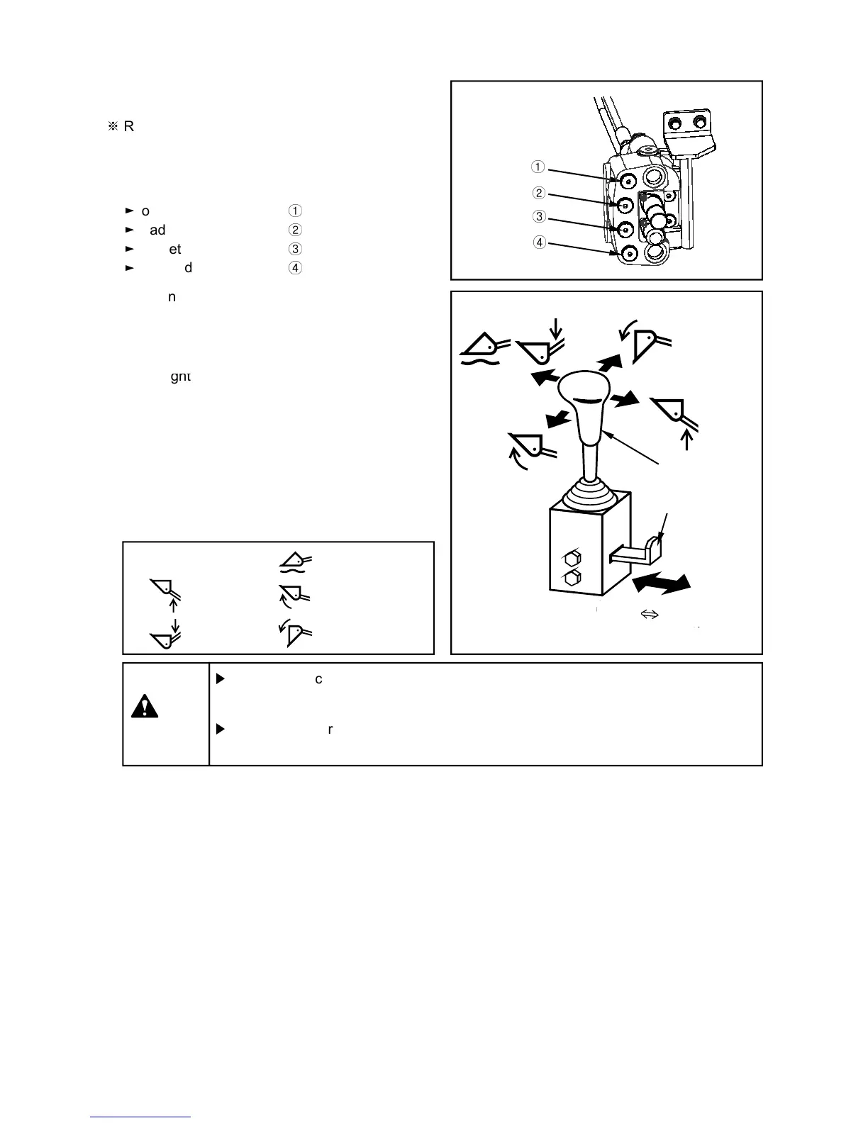 When the loader is at the high position, do not place the joystick lever in the floating
