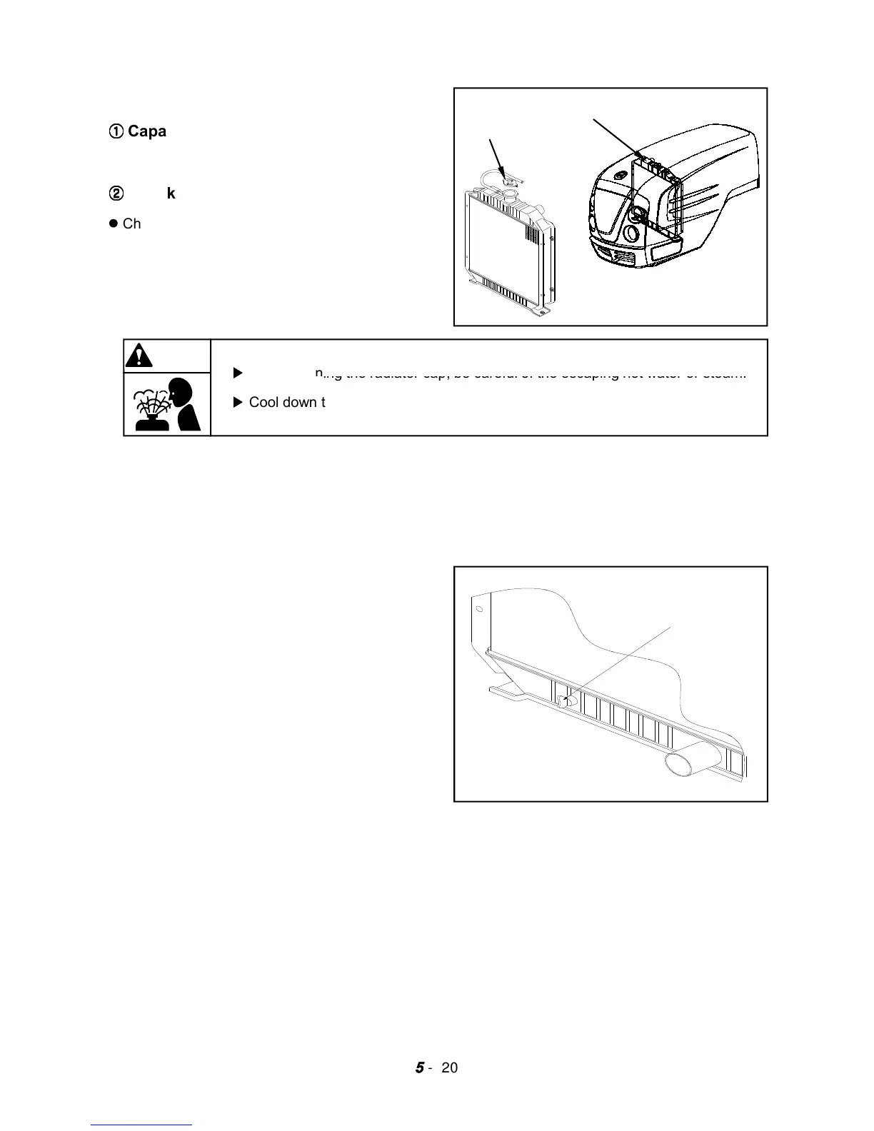When opening the radiator cap, be careful of the escaping hot water or steam.