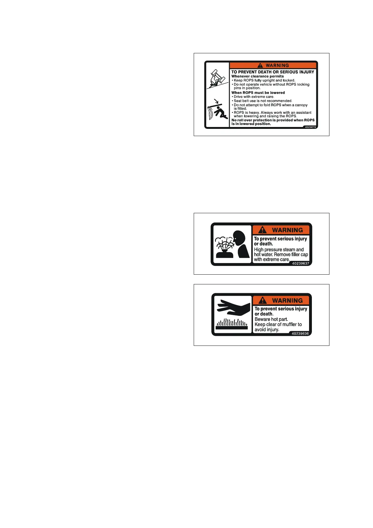• Do not attempt to fold ROPS when a canopy is