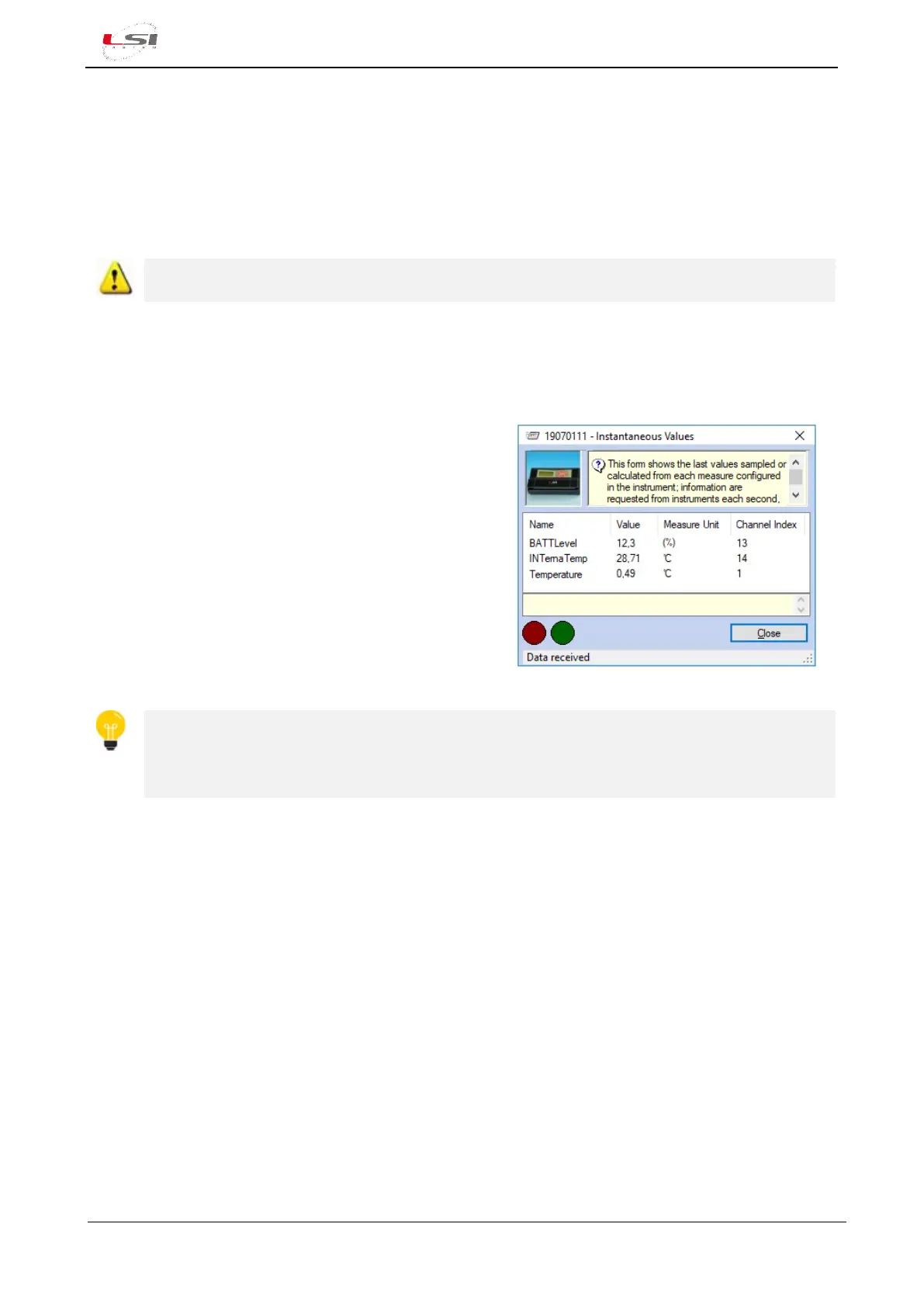 Once the physical connection of the probes has been completed, instant values can be viewed on 3DOM: