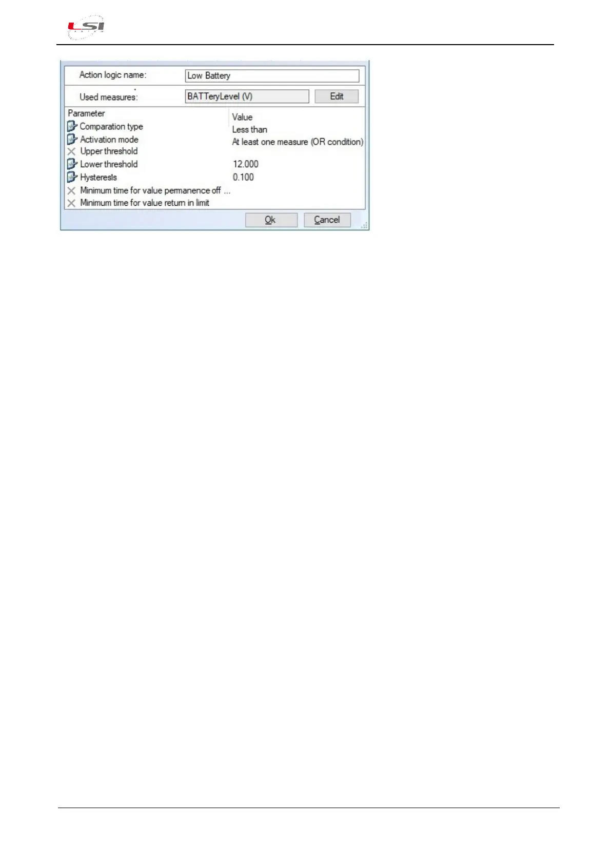• Less then: this logic is activated when the measurement value is less than the lower threshold