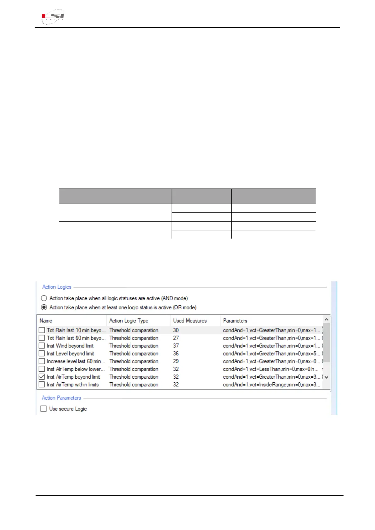measurements, both acquired and calculated. One or more logics can be combined, to switch on the chosen