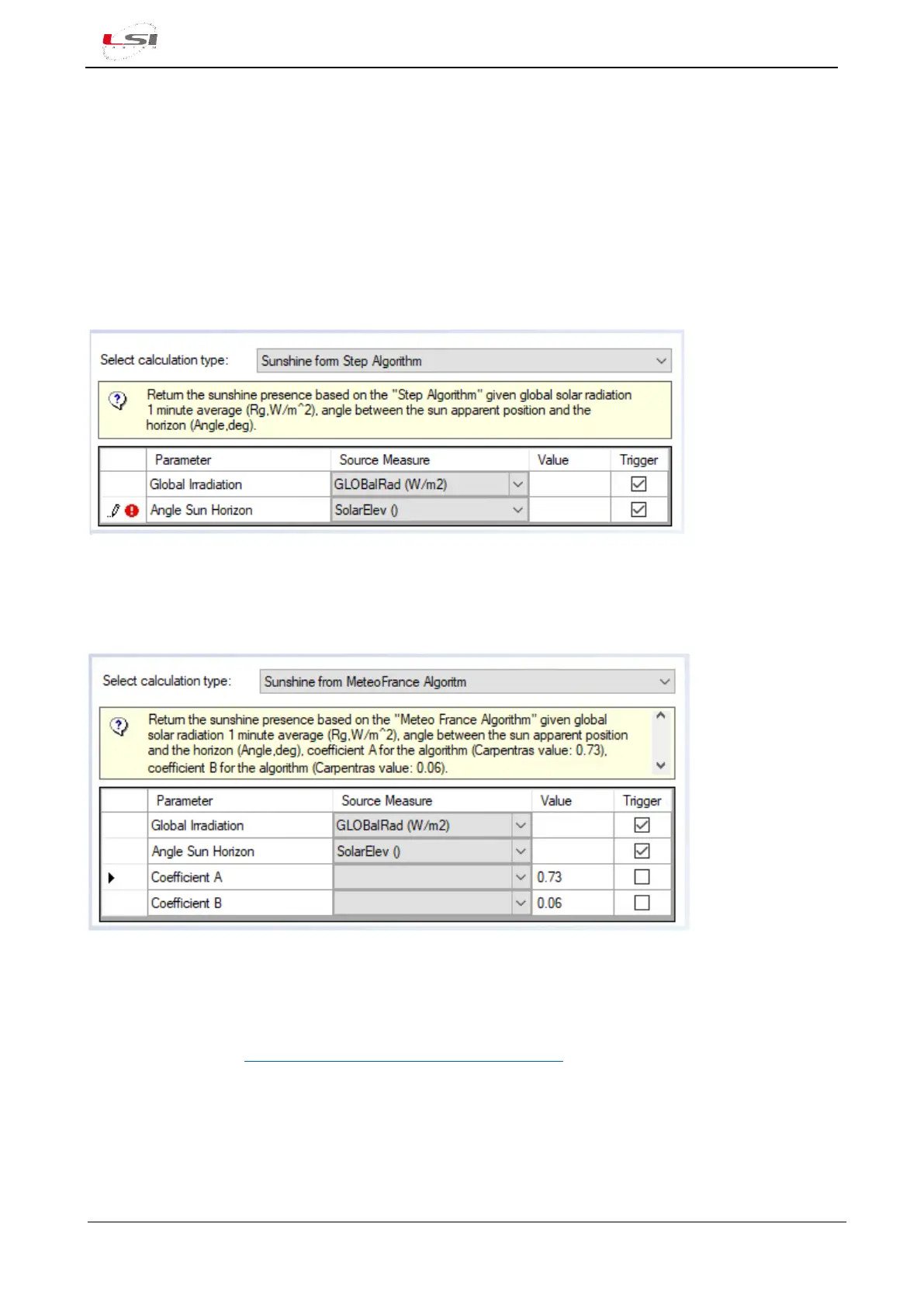 The other two types refer to the calculation methods set out in p. 4 of the document “Sunshine duration –