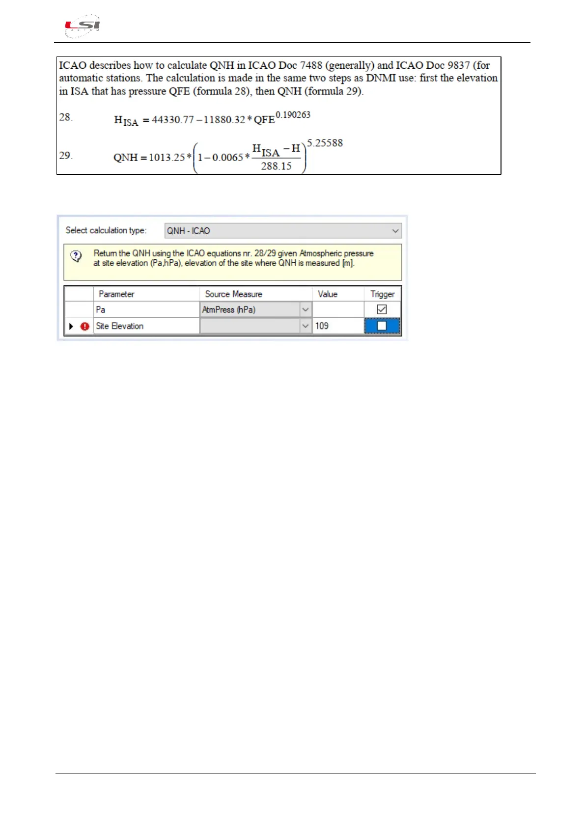 Fig. 34 - Example of calculated measurement configuration of type "QNH - ICAO"