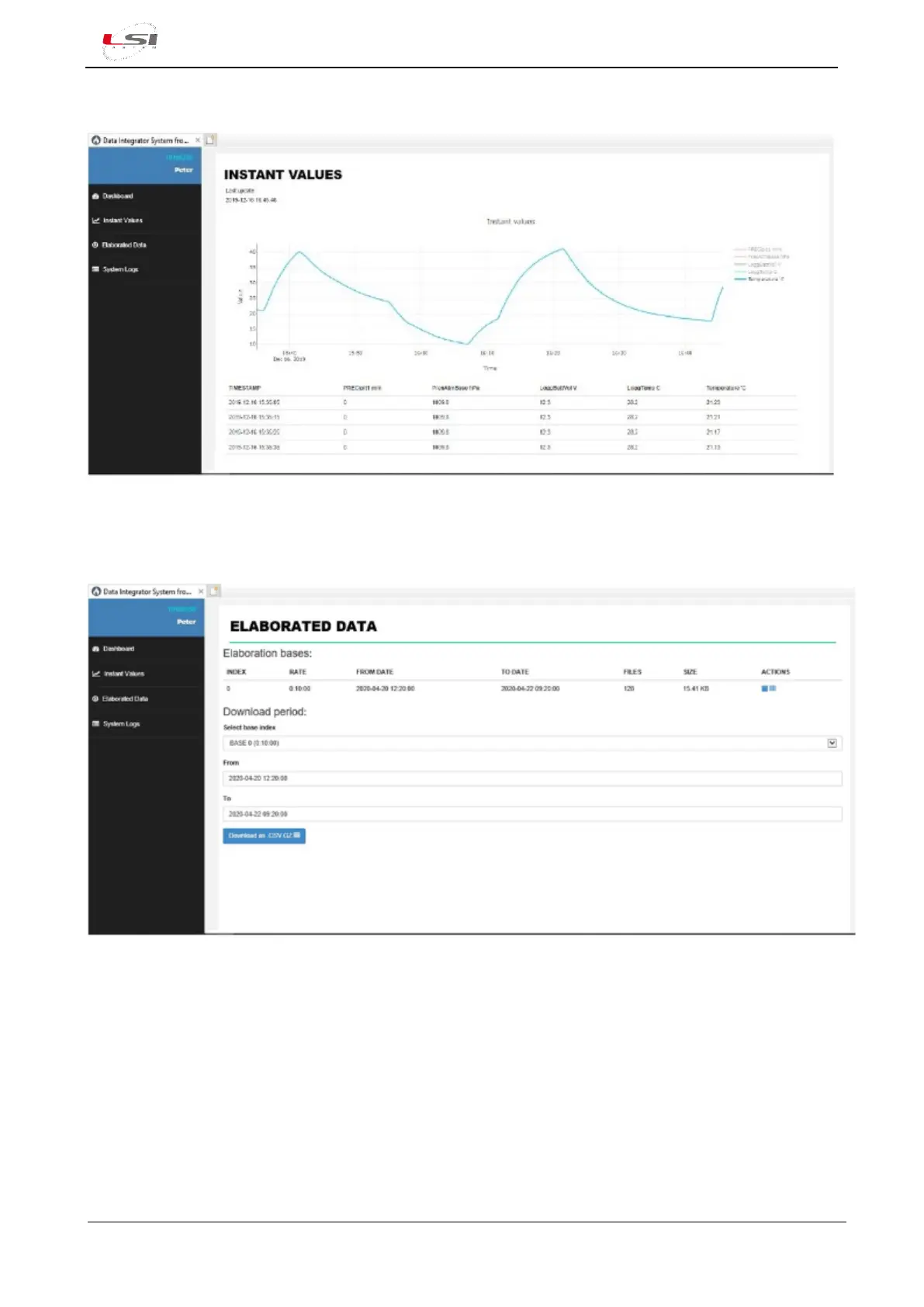In the ELABORATED DATA page it’s possible to download Alpha-Log’s data (*.csv) by specifying the time