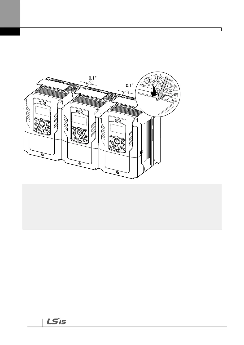 • Side-by-side installation cannot be used for the H100 inverters rated for 37 kW and above.