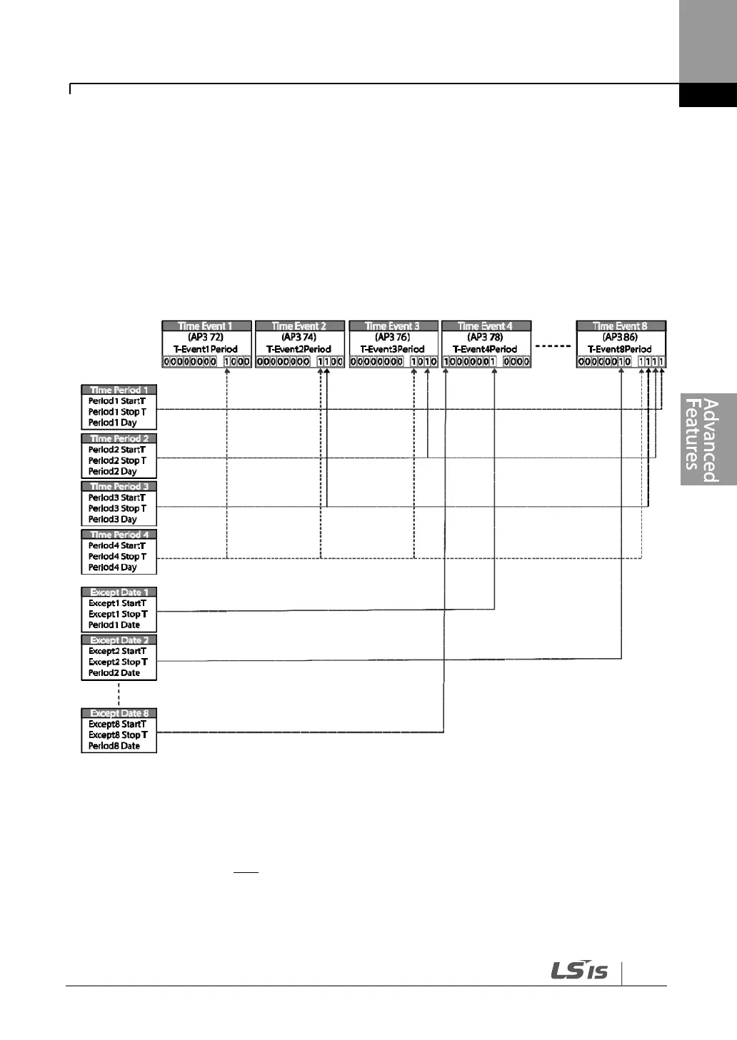 Exception days. Time event modules are set as a bit unit in the parameters for Events 1–8.