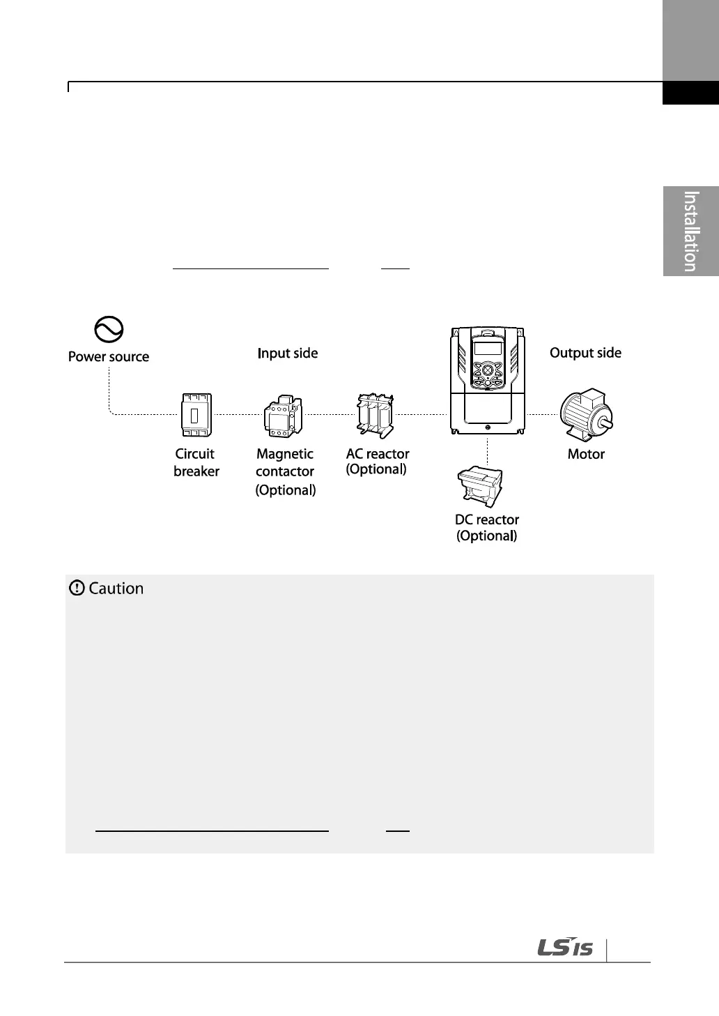• Reactors can be installed to improve the power factor. Note that reactors may be installed