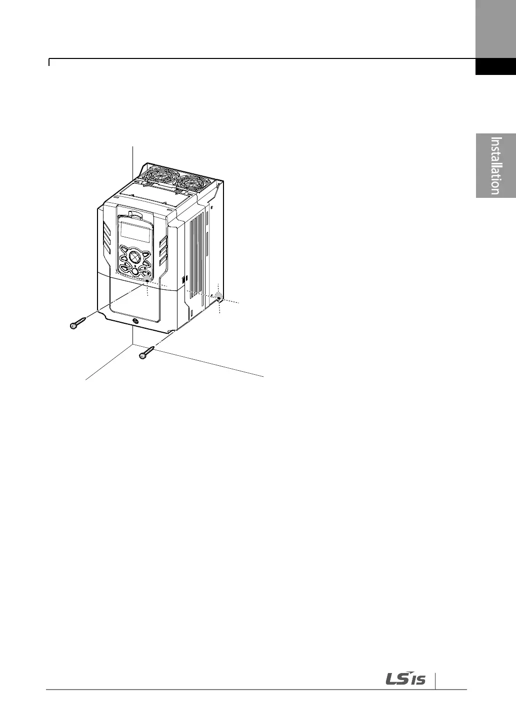 4 Install the two lower mounting bolts. Ensure that the inverter is placed flat on the