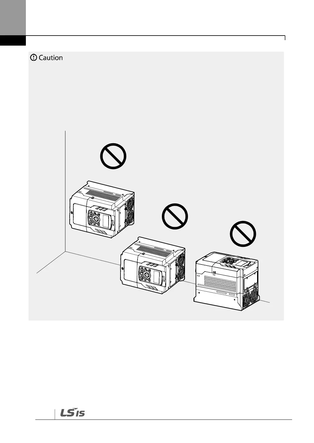 • Do not install the inverter on the floor or mount it sideways against a wall. The inverter must
