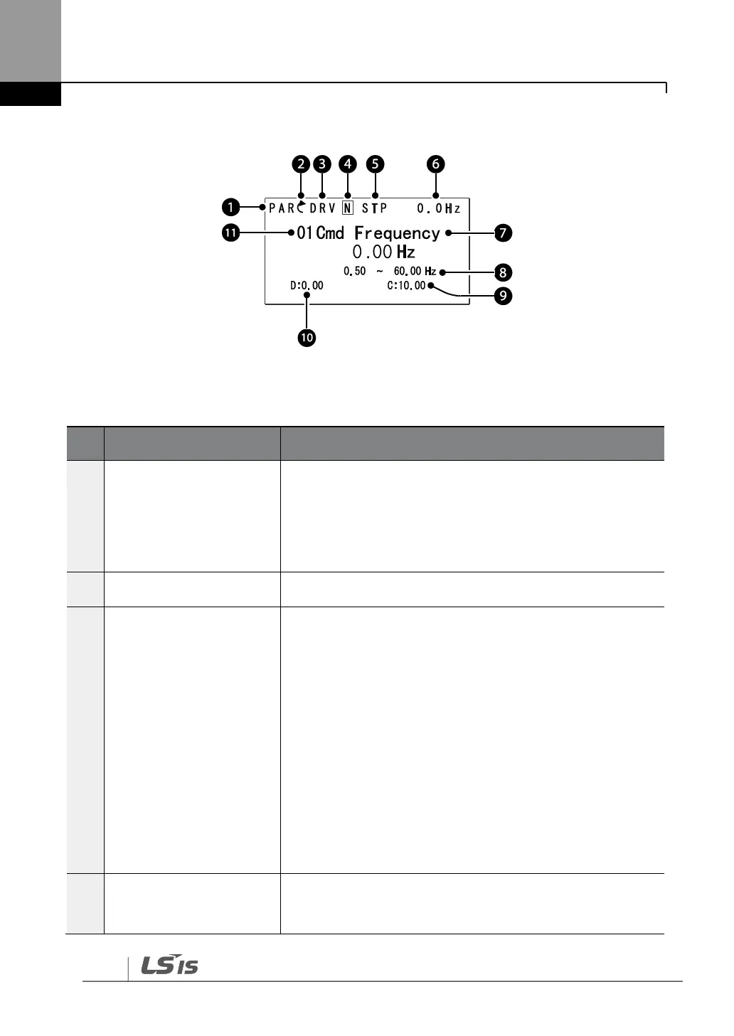 Displays the motor‘s rotational direction: - Fx or Rx.