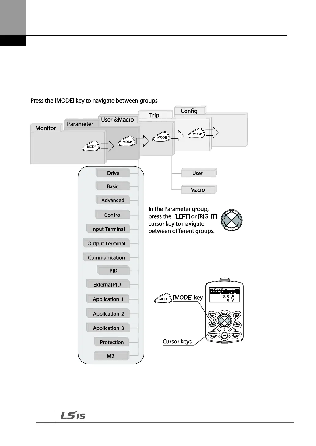 in Parameter mode and User & Macro mode are divided into smaller groups of relevant
