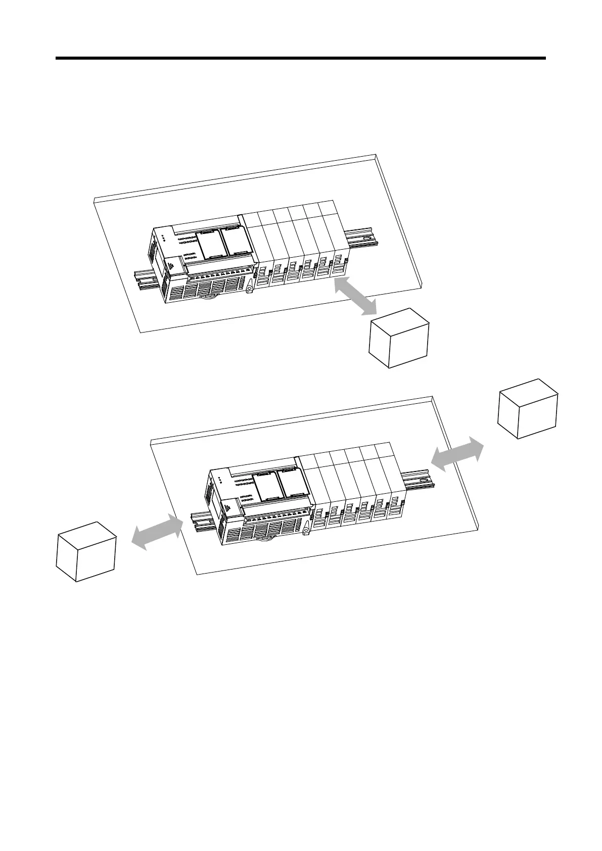 To avoid radiation noise or heat, keep the distance between PLC and device (connector and relay) as far as