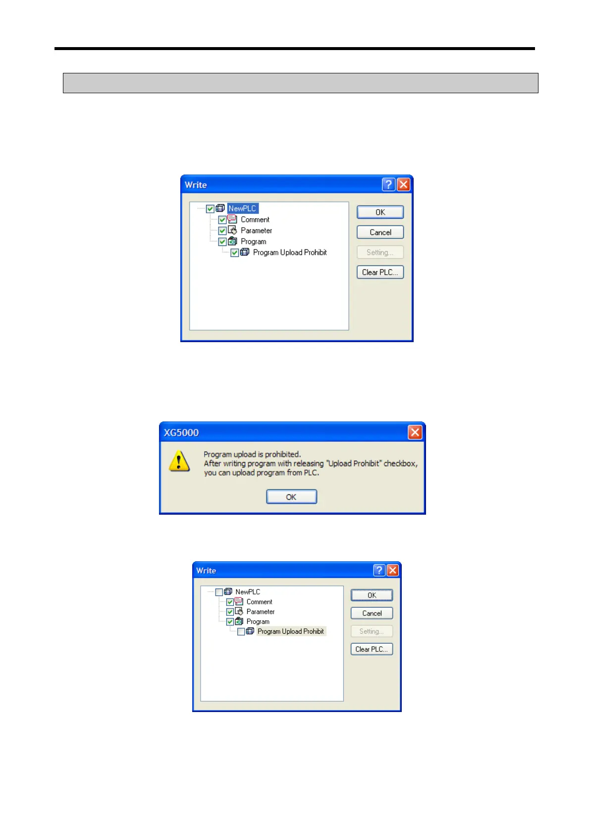 (c) Select “Program Upload Prohibit” and click OK.