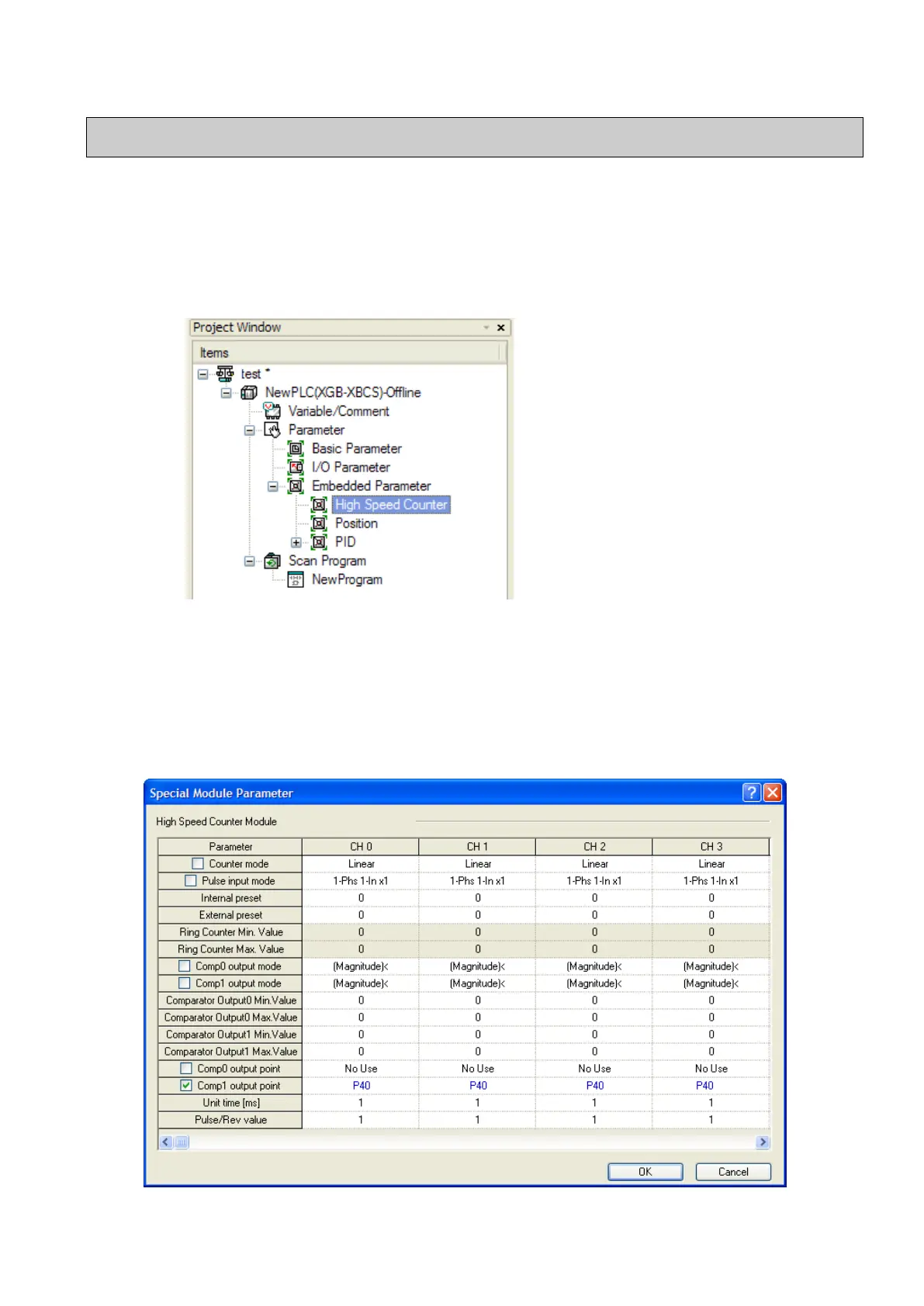 (b) Selecting high-speed counter opens a window to set high-speed counter parameters as follows.