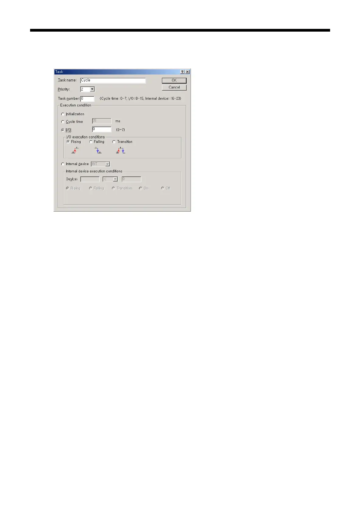 Set the execution condition and priority to the task being executed. Check the task no. to manage the task.