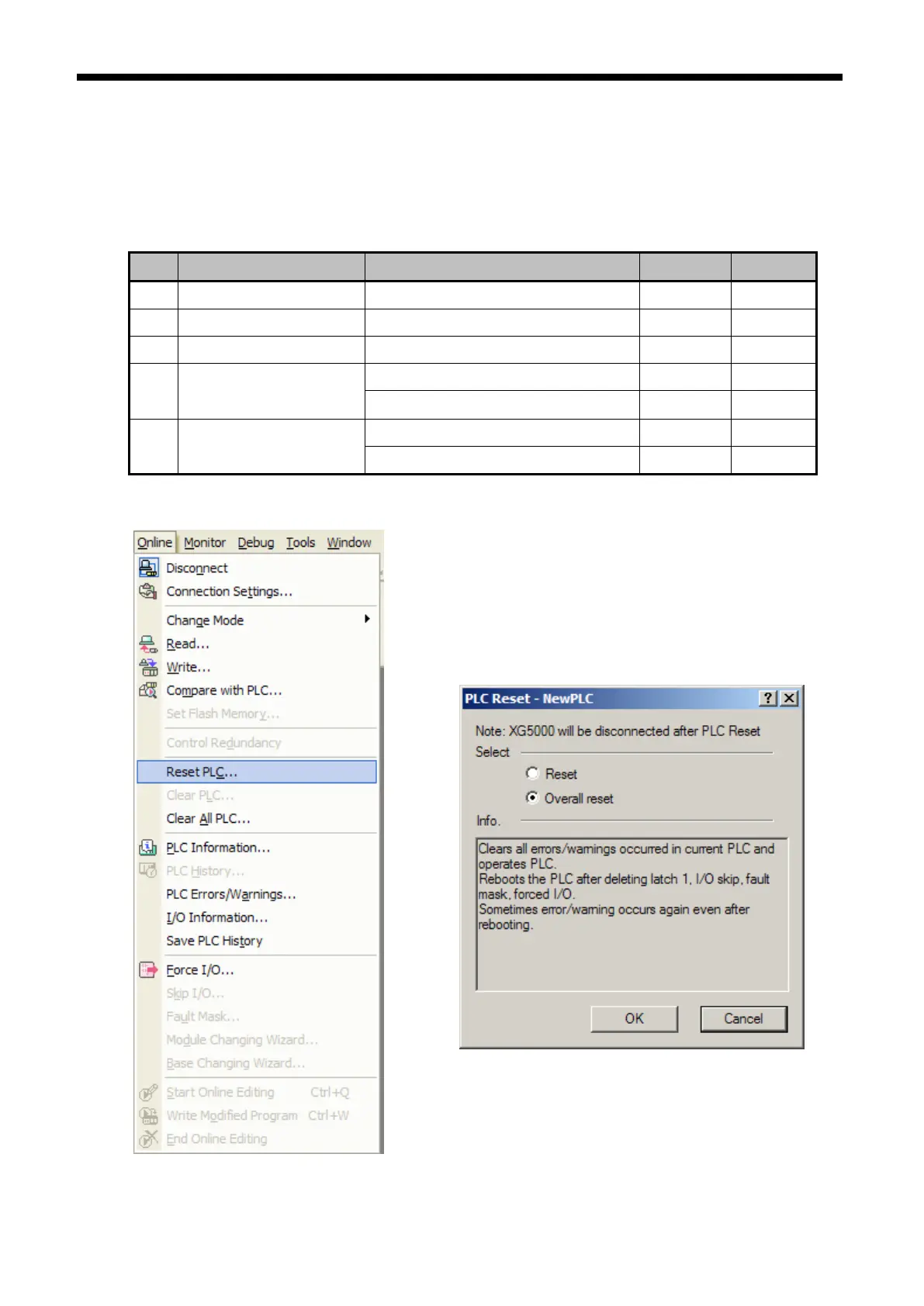 (b) Latch 1 area is cleared by『Online』-『Reset PLC』- “Overall reset”.