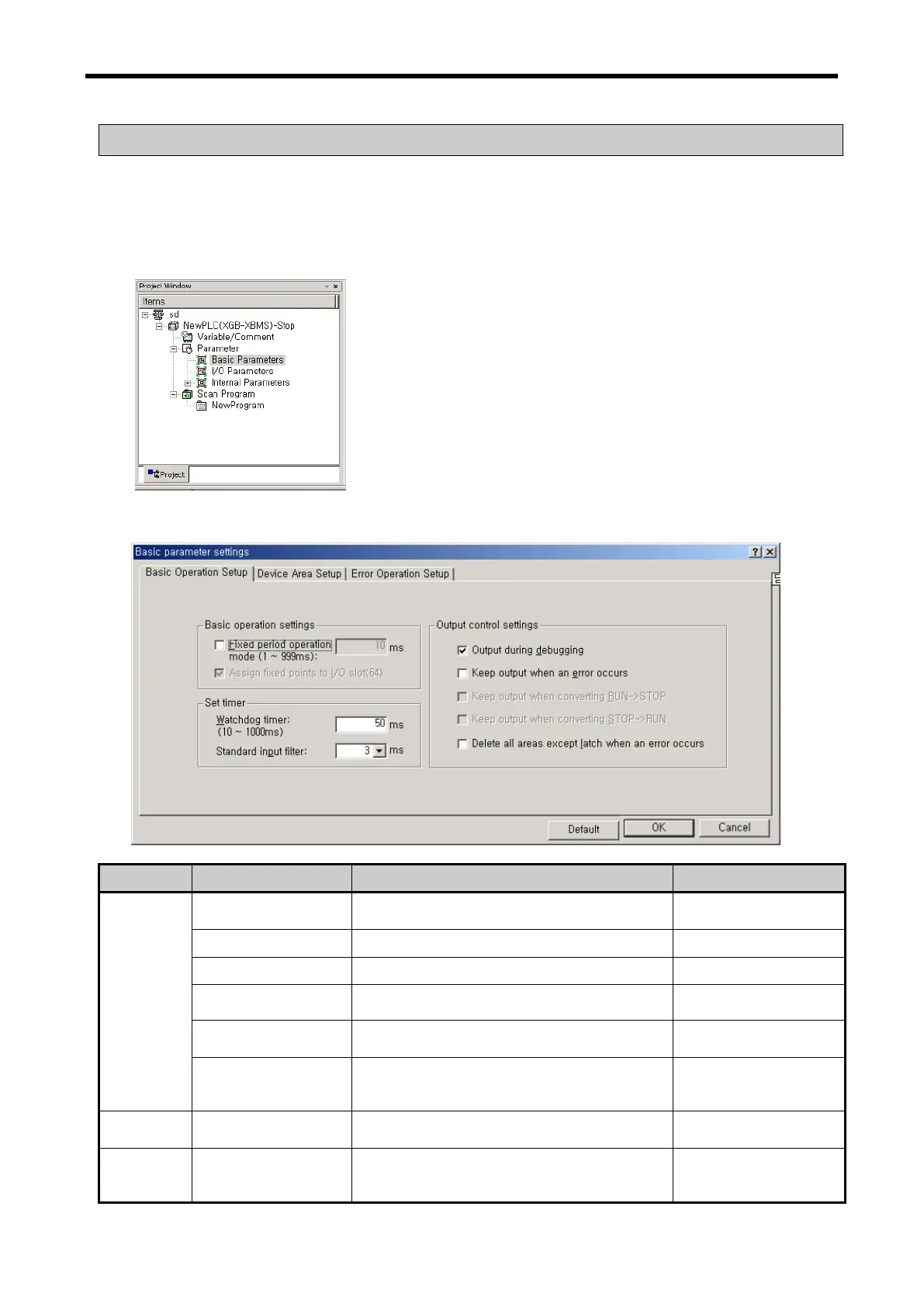 There are three main options ; “Basic Operation Setup” , “Device Area Setup” and “Error Operation