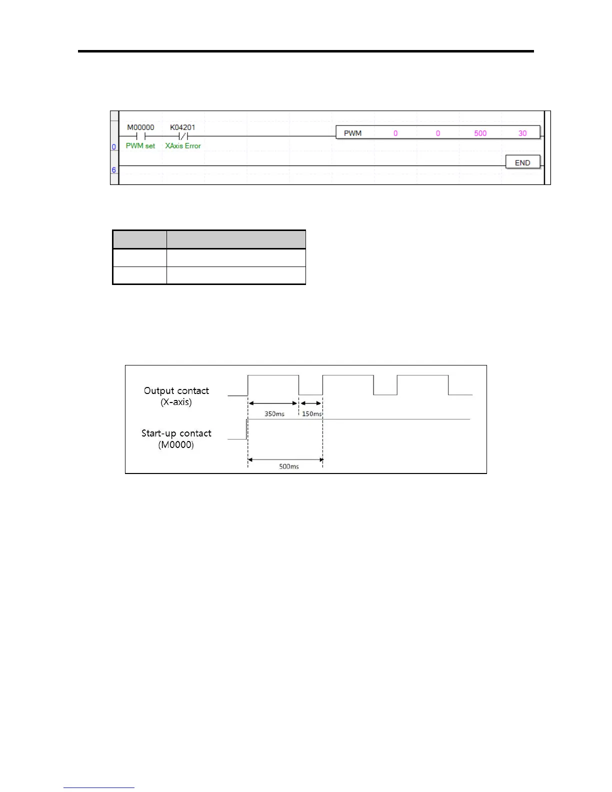 • If PWM executed, designated output cycle(500ms for this picture) and designated Off duty