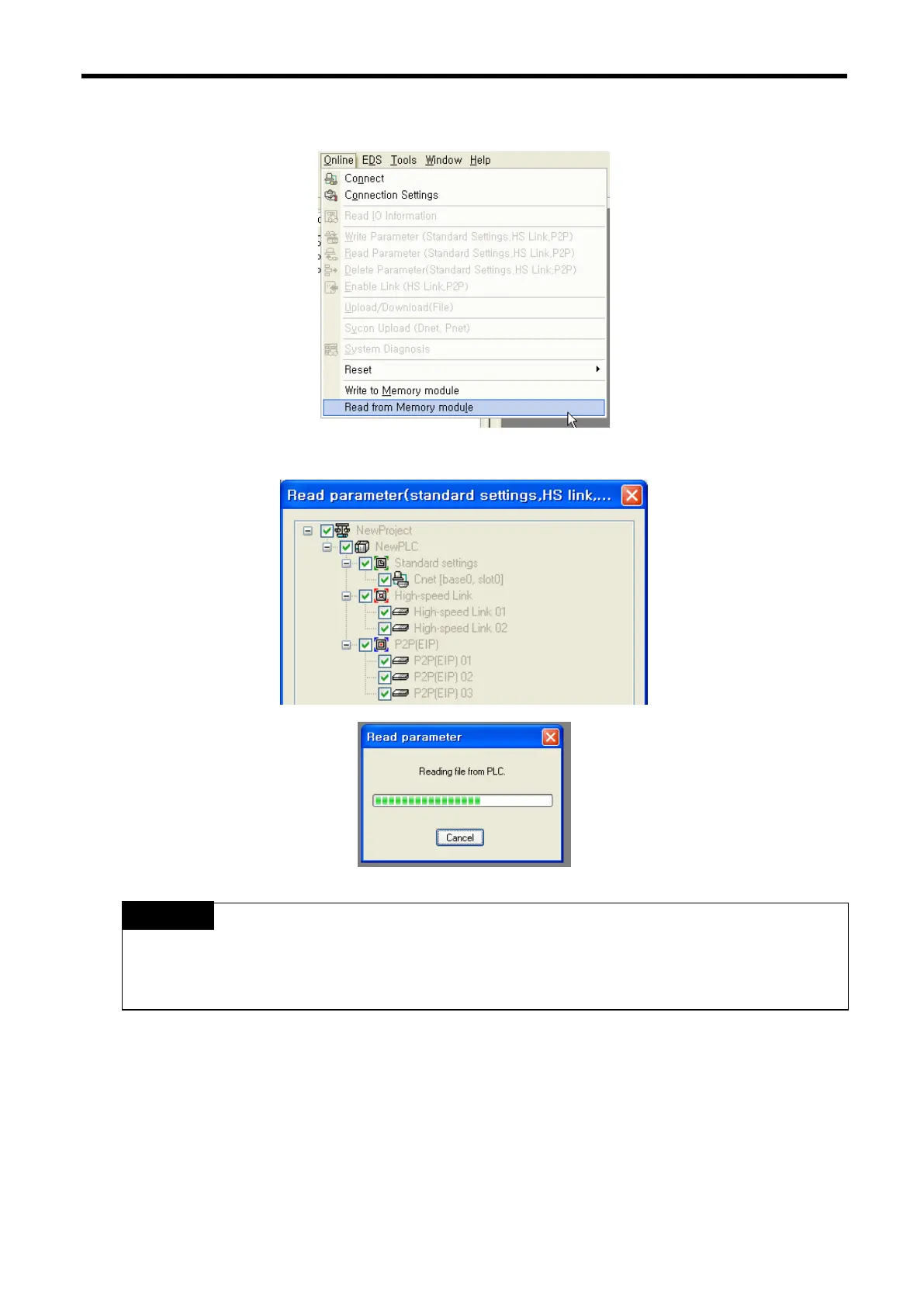(b) Select “Online Read from Memory module” on XG-PD menu.