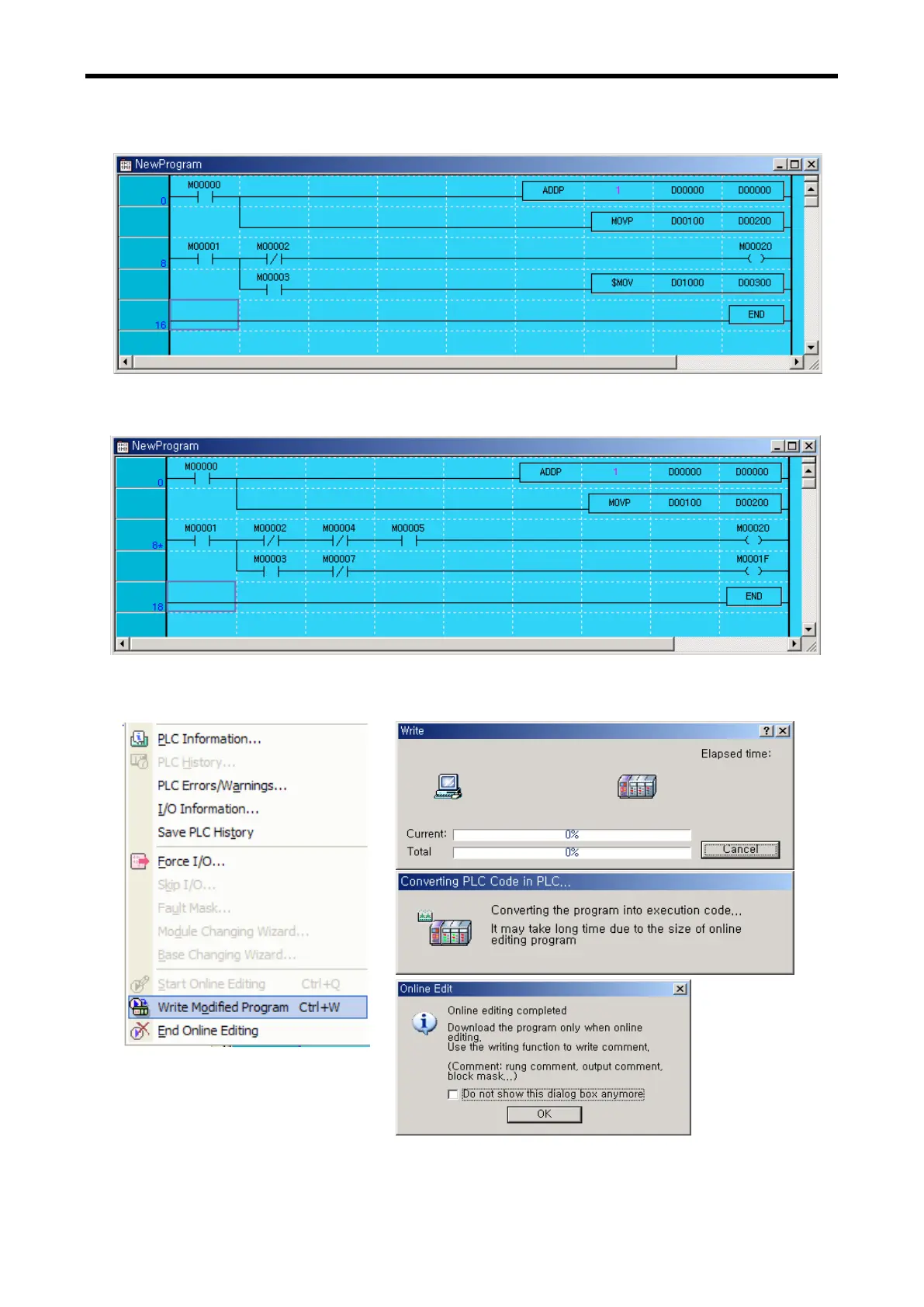 (5) Upon the modification of program, click Online-Write Modified Program.