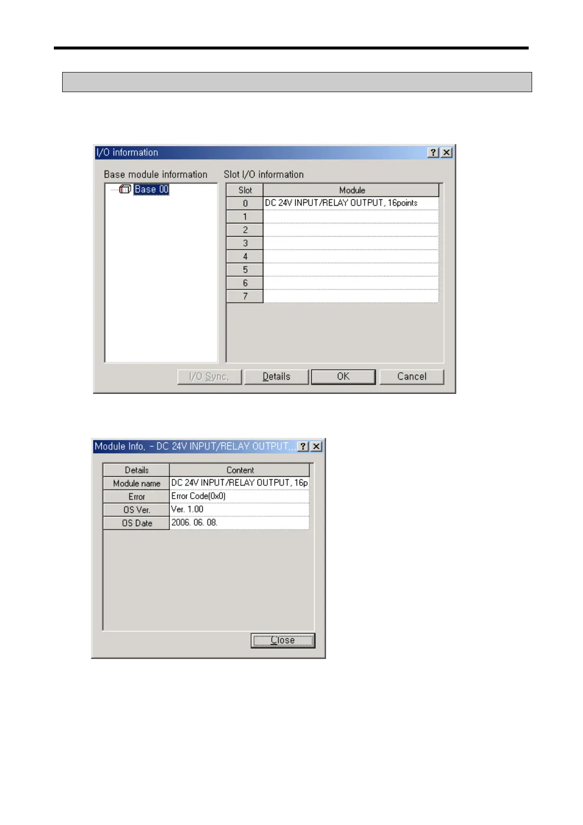 (1) ClickOnline-I/O Info. Then, information of each module connected to the system is monitored.
