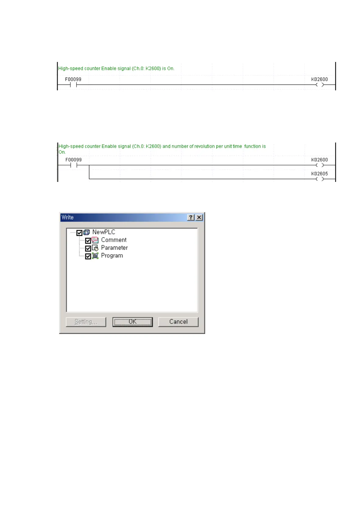 Turn ‘ON’ the high-speed counter Enable signal (CH0:K2600) in the program.