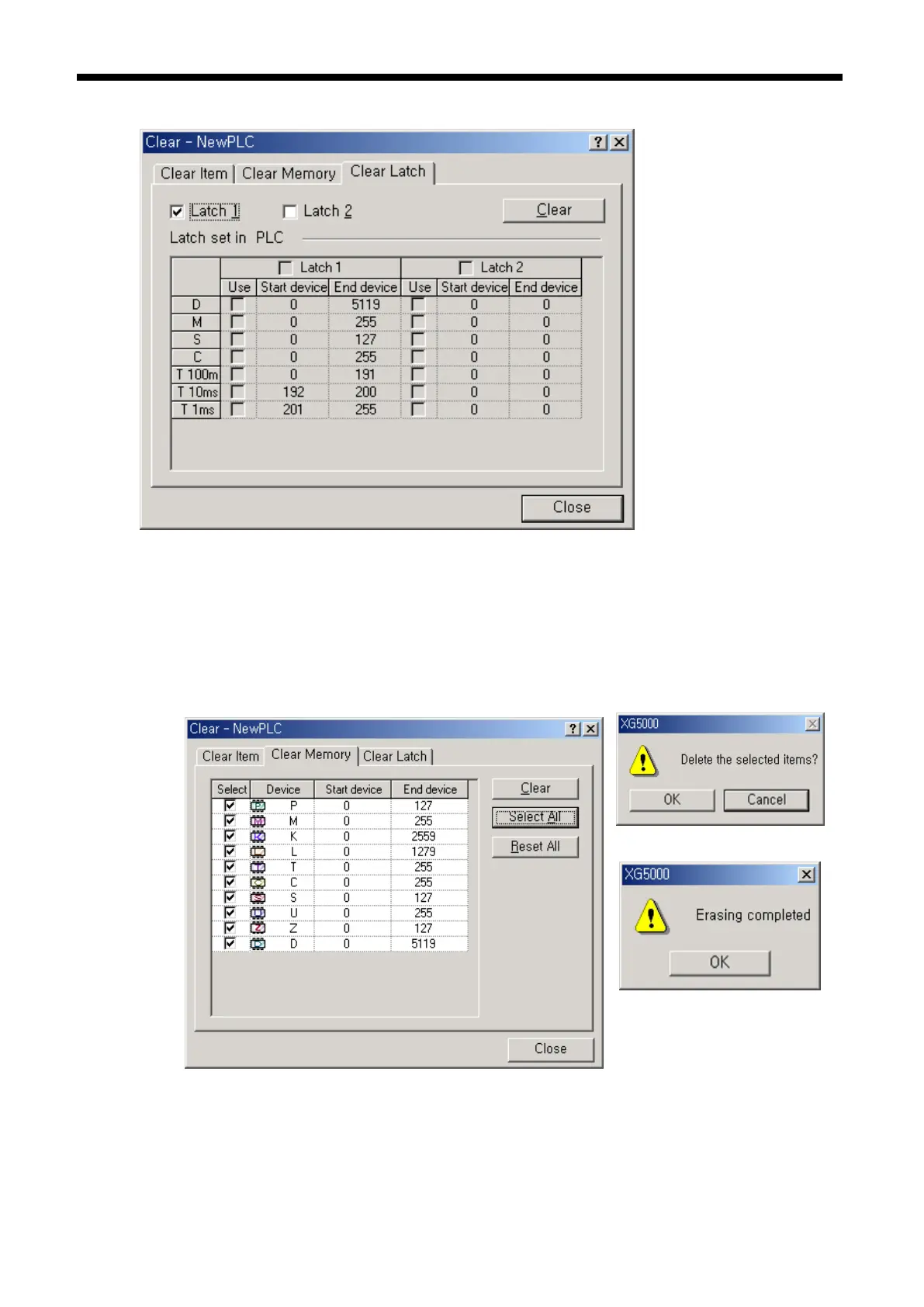 (a) Device area is cleared by click „Clear‟ in 『Online』-『Clear PLC』-『Clear Memory』.