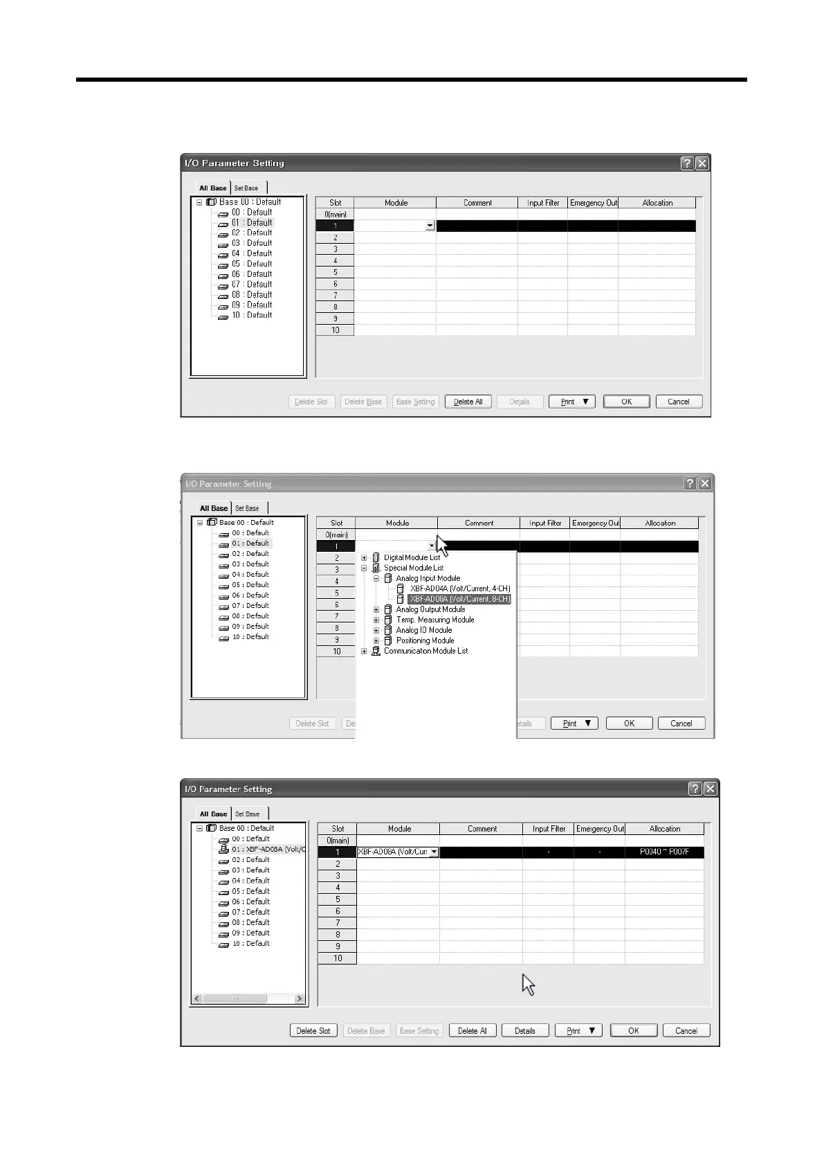 (c) In the [I/O Parameter Setting] window, find out the slot of the base where the analog mix module is