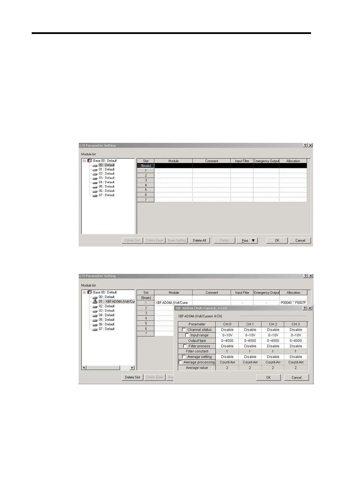 (a) If double-clicking Parameter – I/O parameter, it opens up the setting window as illustrated