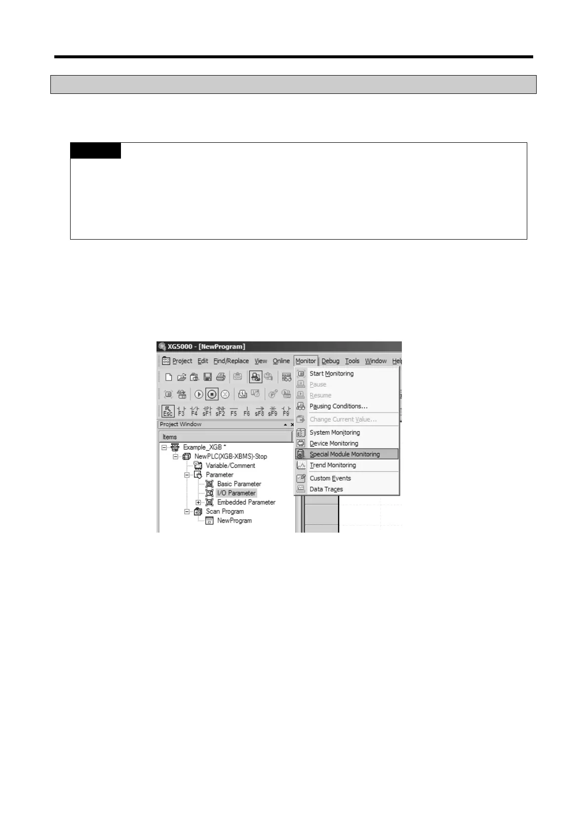 Monitoring]. If the status is not [On-Line], [Special Module Monitoring] menu will not be activated.