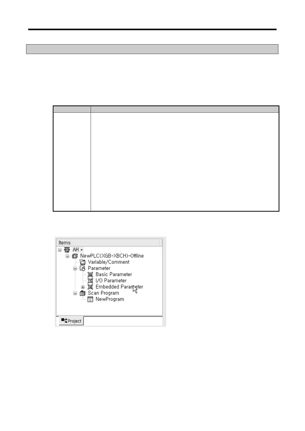 parameter setting. The items which can be set up in the [I/O Parameter] in the XG5000 project
