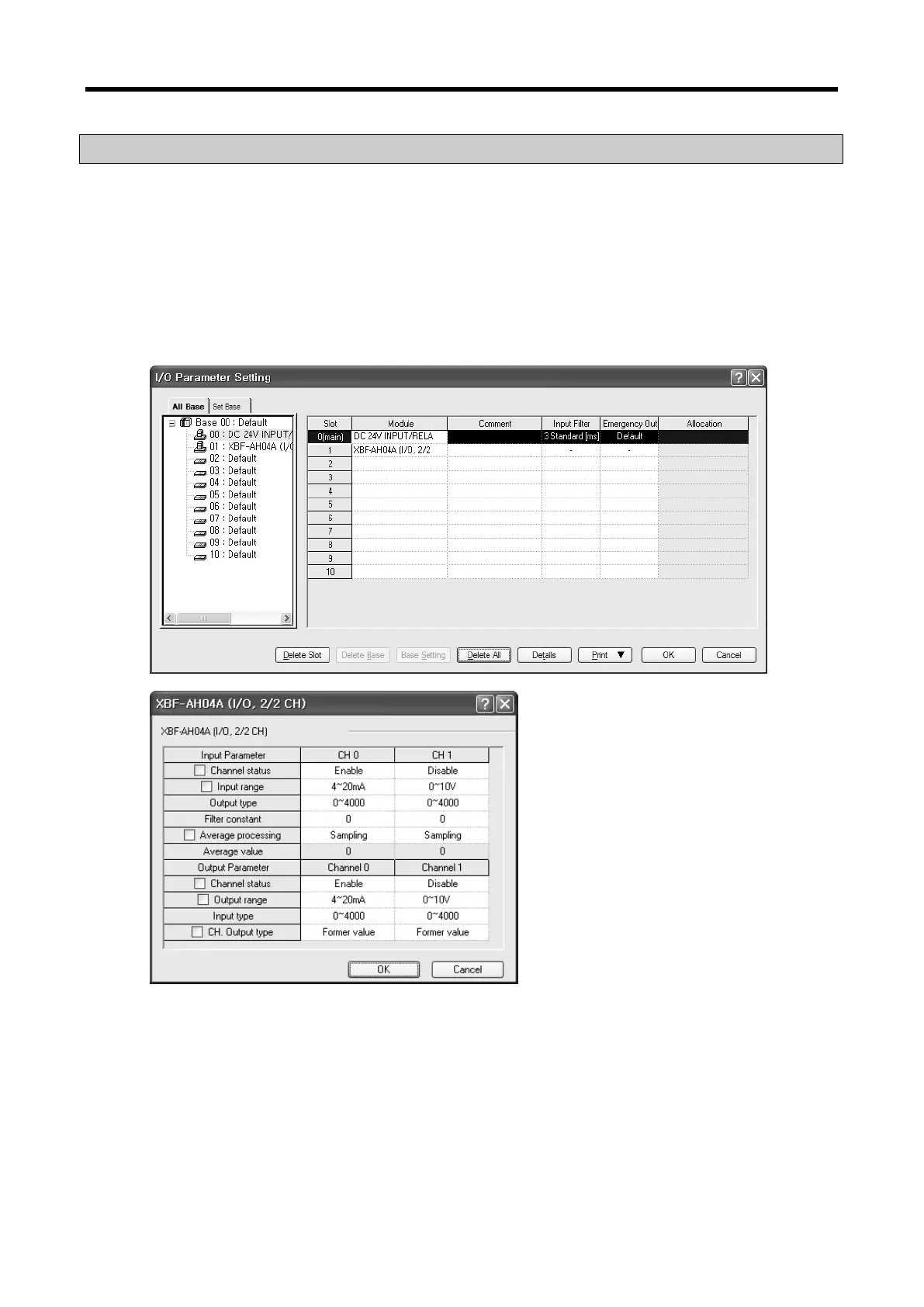 (1) I/O Parameter Setting Window