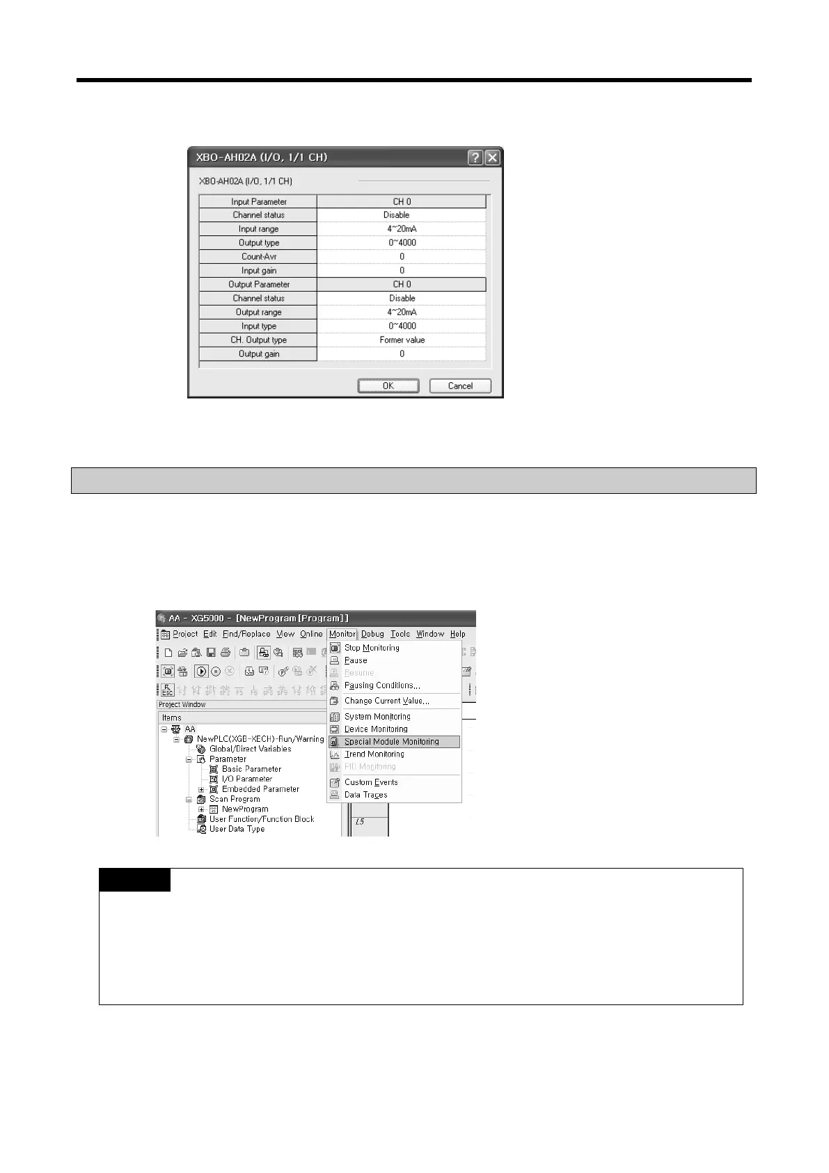 2) The I/O parameters set up in [Special Module Monitor] condition are temporarily set up for testing