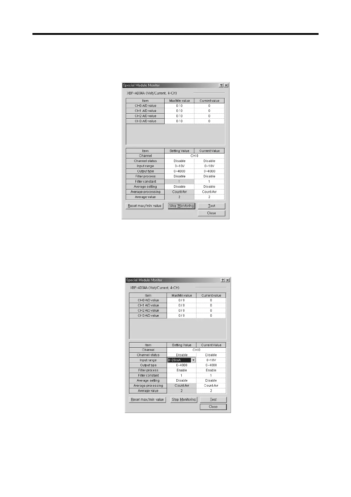 (d) [Start Monitoring]: Click [Start Monitoring] to display A/D converted value of the presently