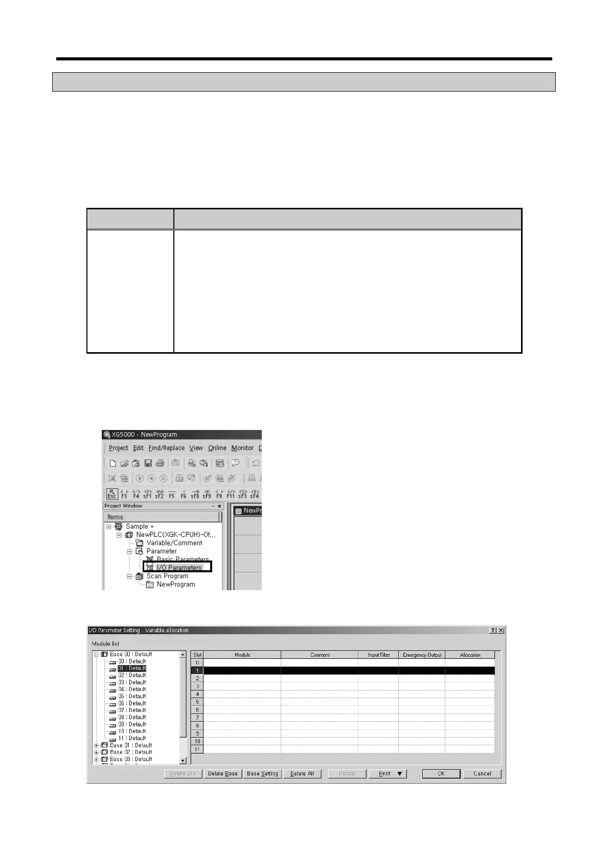 Followings are available through [I/O parameters] on the XG5000 project window.