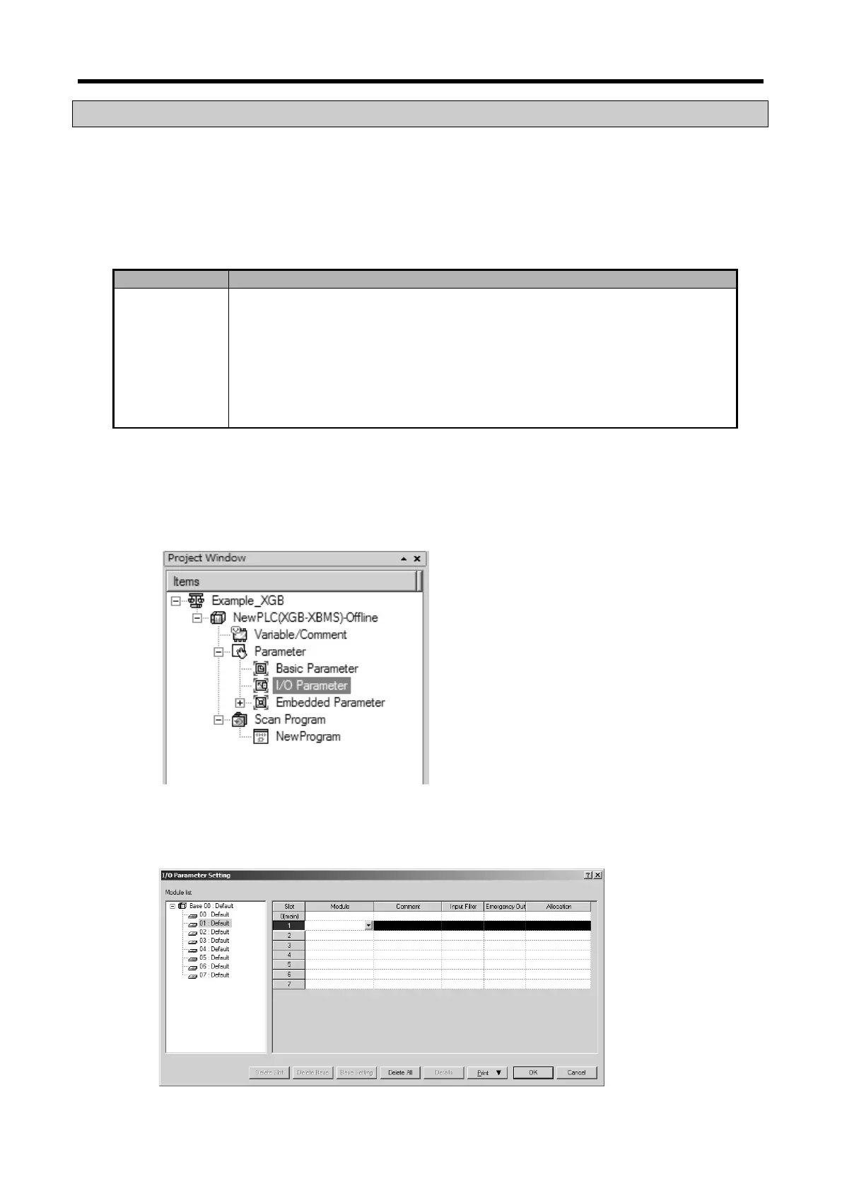 For the users convenience, XG5000 provides GUI (Graphical User Interface) for parameters setting