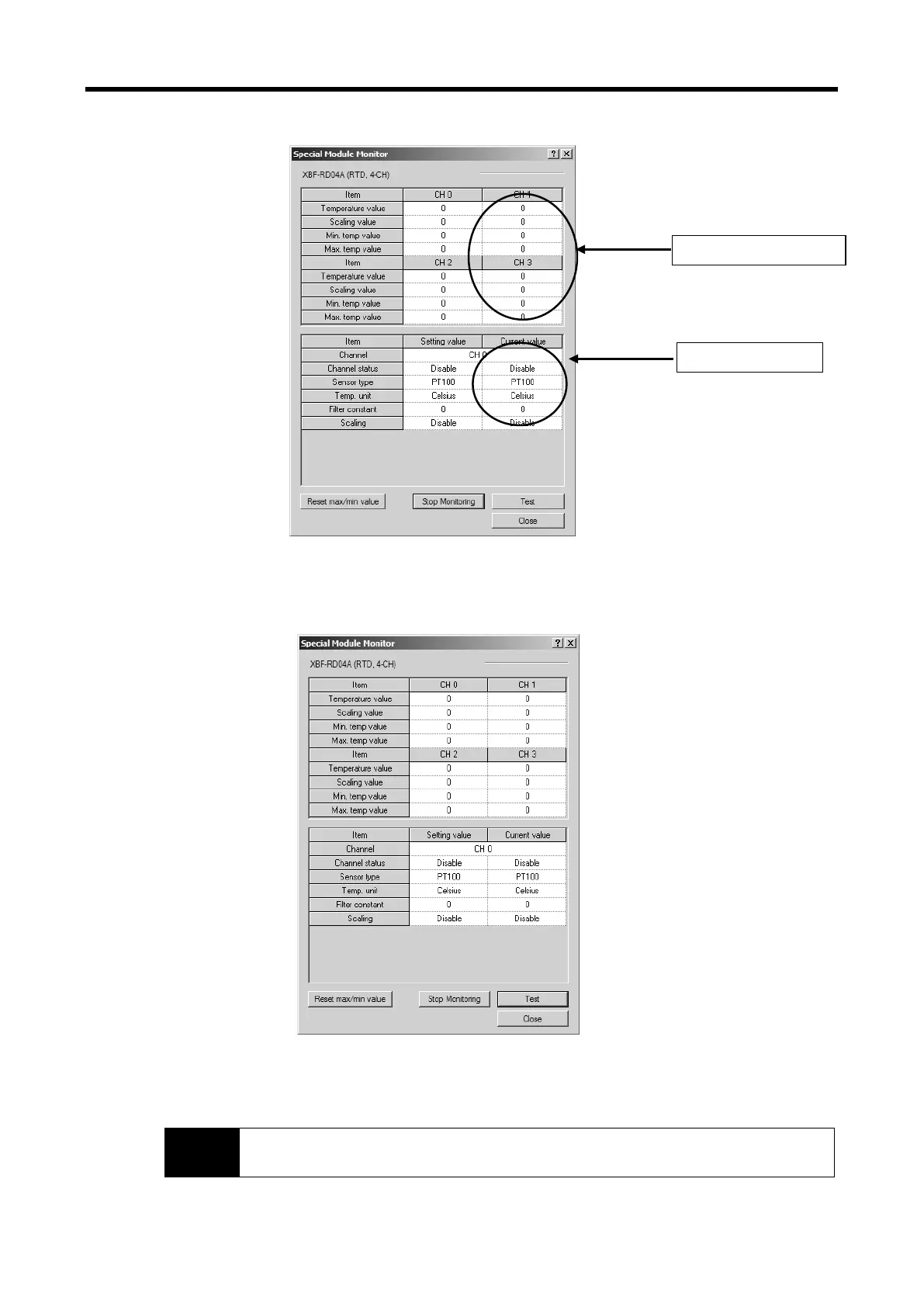 (e) [Test]: [Test] is used to change the parameters of the RTD input module. You can change the