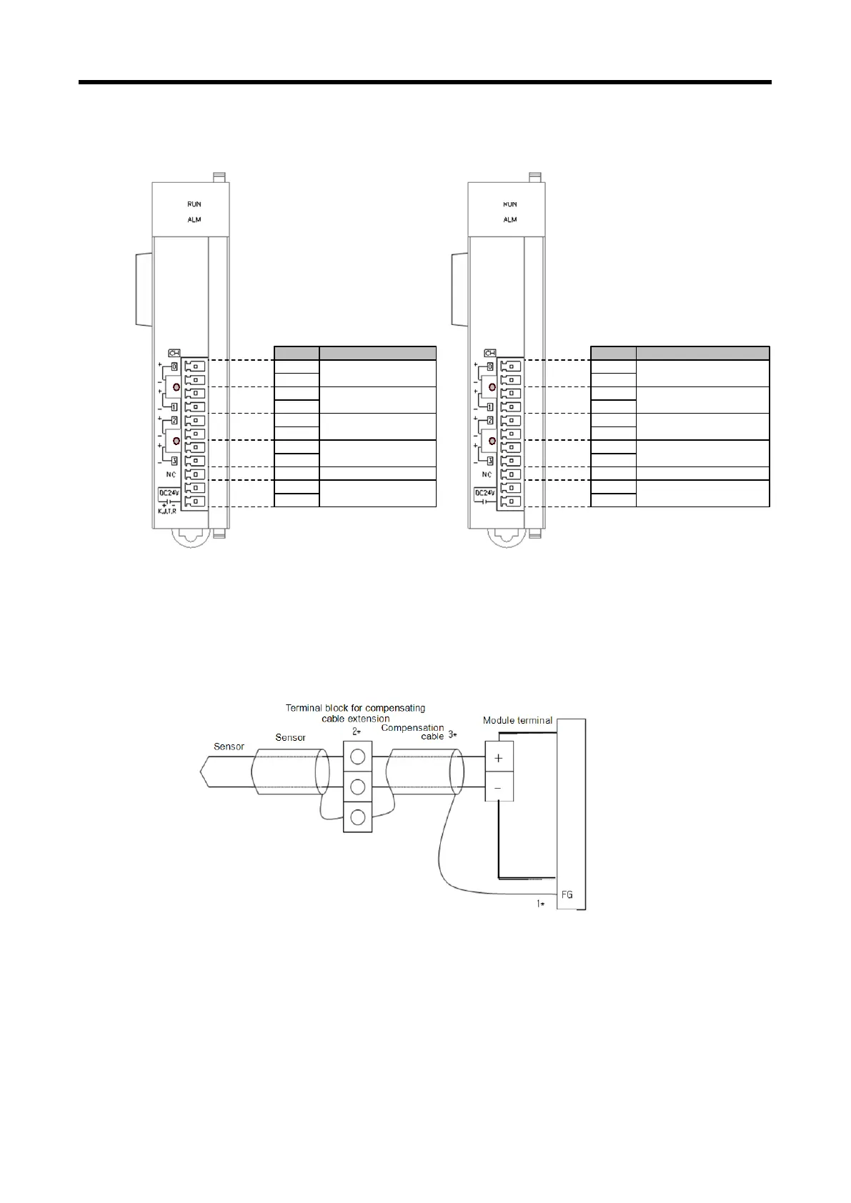 In case sensor and compensating cable are shielded, shield connection is possible to PLC PE terminal.