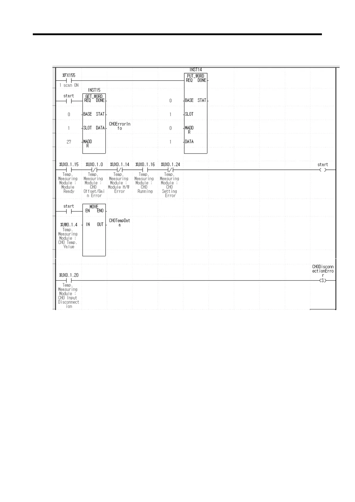 (d) Operation start bit is on, moves CH 0 temp. conversion value (%UW0.1.4) into CH 0 temp.