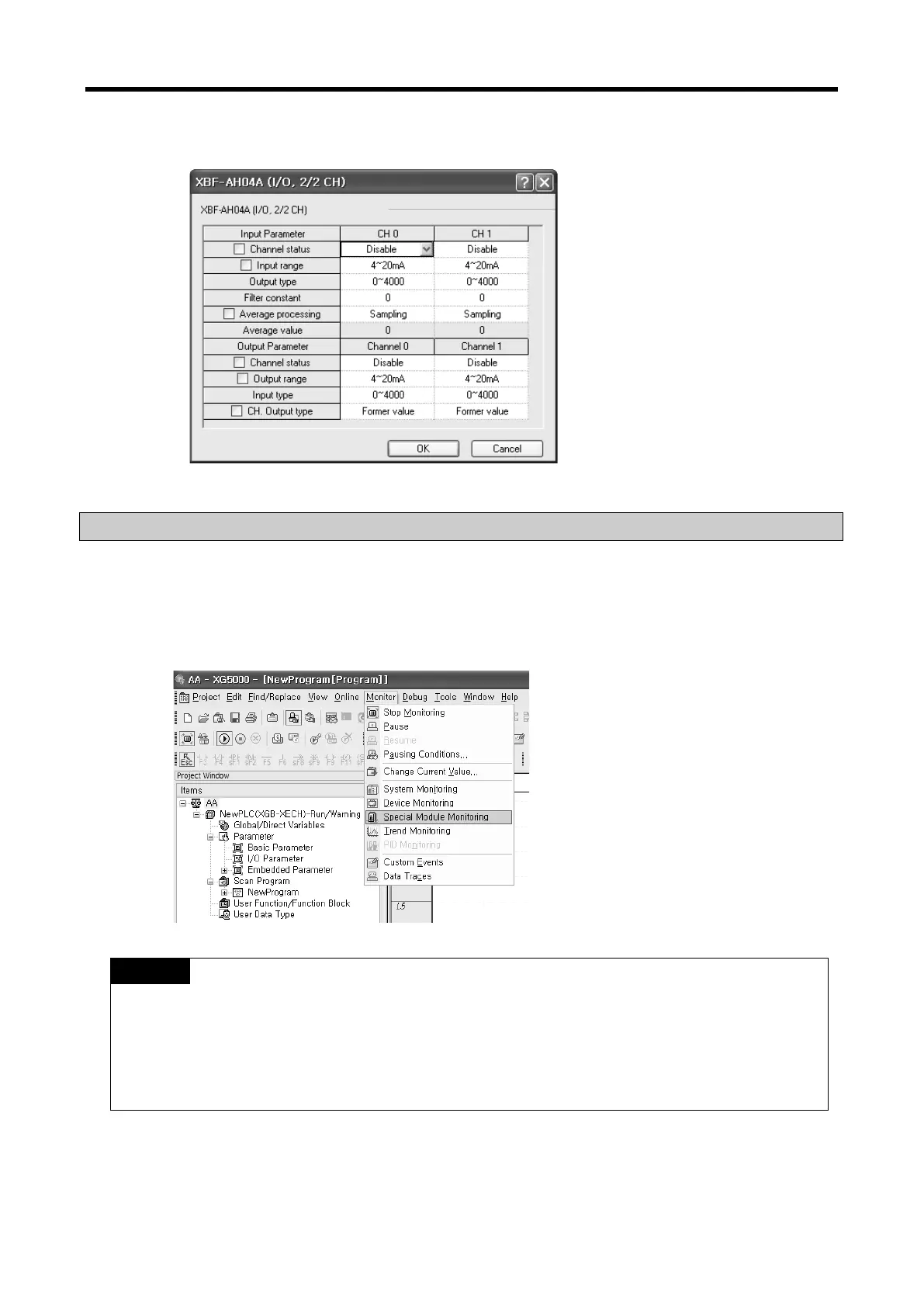 2) The I/O parameters set up in [Special Module Monitor] condition are temporarily set up for testing