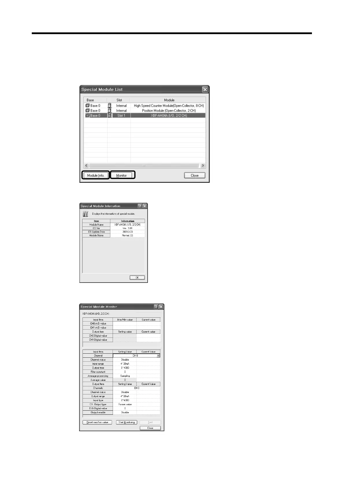 (c) Click the [Monitor] button in the “Special Module” window. The “Special Module Monitor’