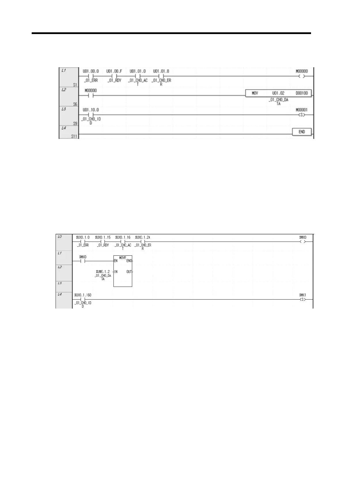 (c) If open-wire error occurs in channel 0, U01.10.0 (channel 0 open-wire) is ON, and M0001 bit is