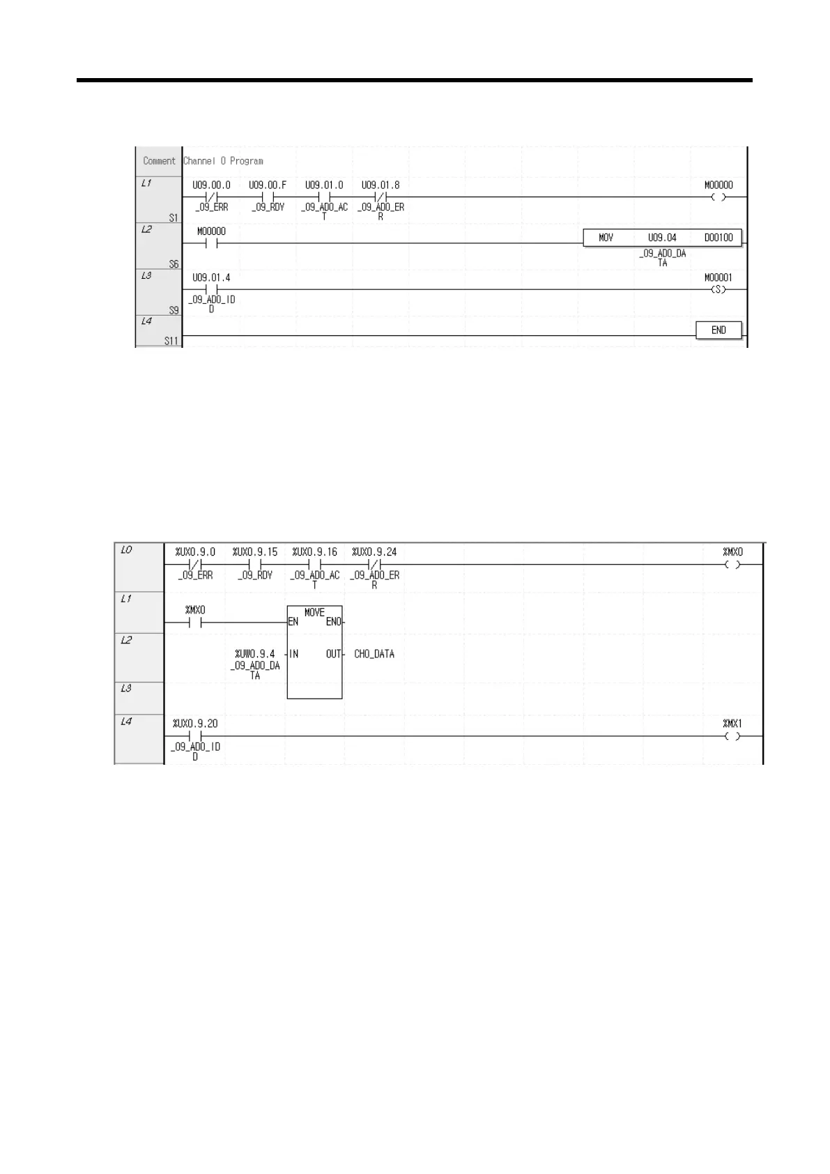 (b) When M0000 is ON, Input Channel 0 Converted Value((%UW0.9.4) is moved to “CH0_DATA”.