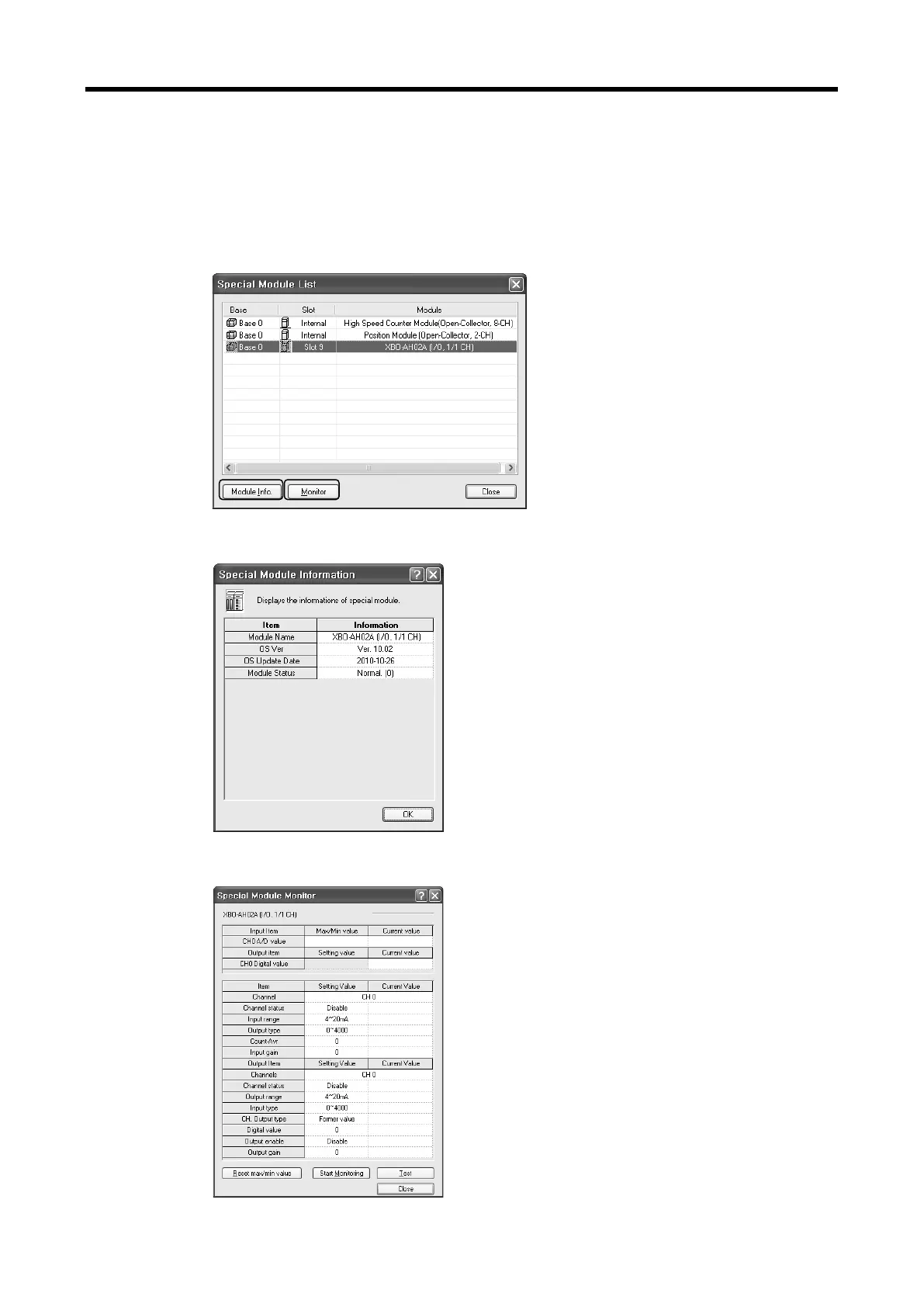 (c) Click the [Monitor] button in the “Special Module” window. The “Special Module Monitor’
